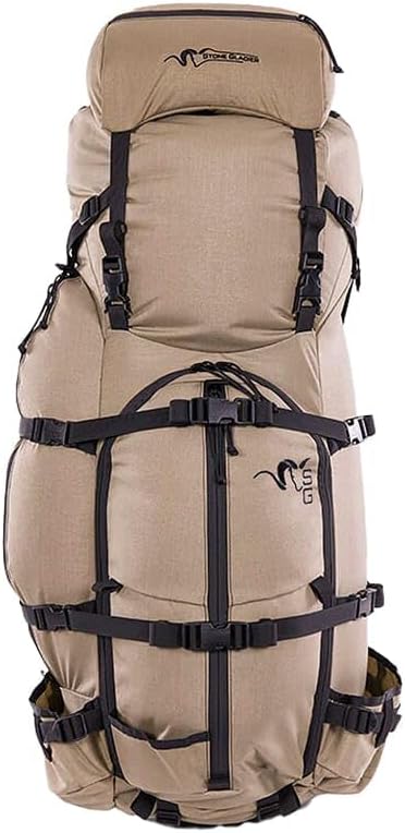 Stone Glacier Sky Guide 7900 Pack with Xcurve Frame, 7900 Cubic Inches, Tan, Large, Heavy-Duty YKK Zippers, 150+ Pound Load Rating, Hydration Pack Compatible (50078-TN-L)