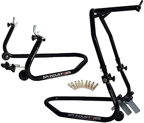 GP Pro Series - Gloss Black Universal Front and Rear Stand Set Motorcycle Sportbike Paddock Stands Lifts For Kawasaki Suzuki Honda Yamaha BMW Ducati Triumph Sport and Sport Touring Bikes