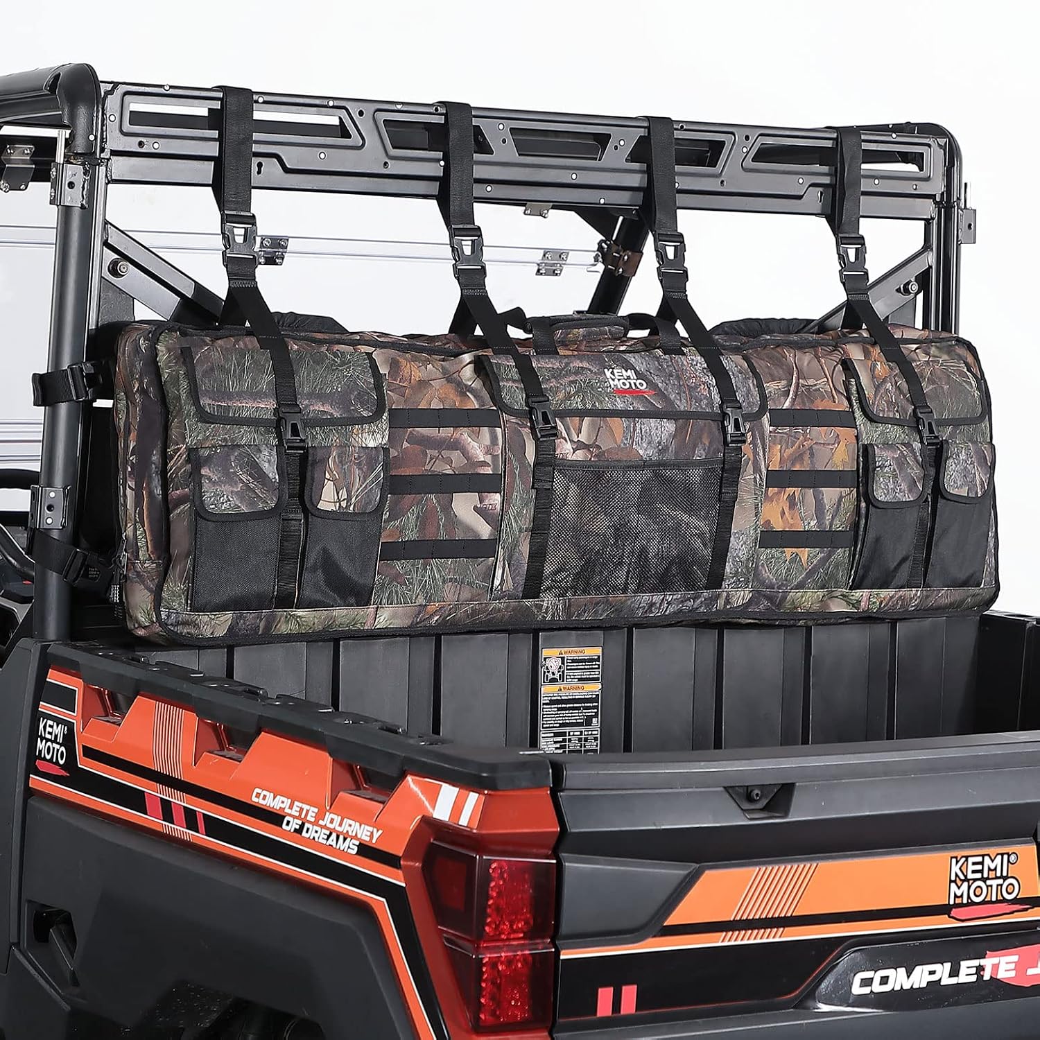 KEMIMOTO Double UTV Tool Bag Rack, Hunting Tool Holder Rack Soft Carrier Case Rear Roll Cage, Bow Storage Bag Compatible with Polaris Ranger Mule Uforce, Most General UTVs (Camo)