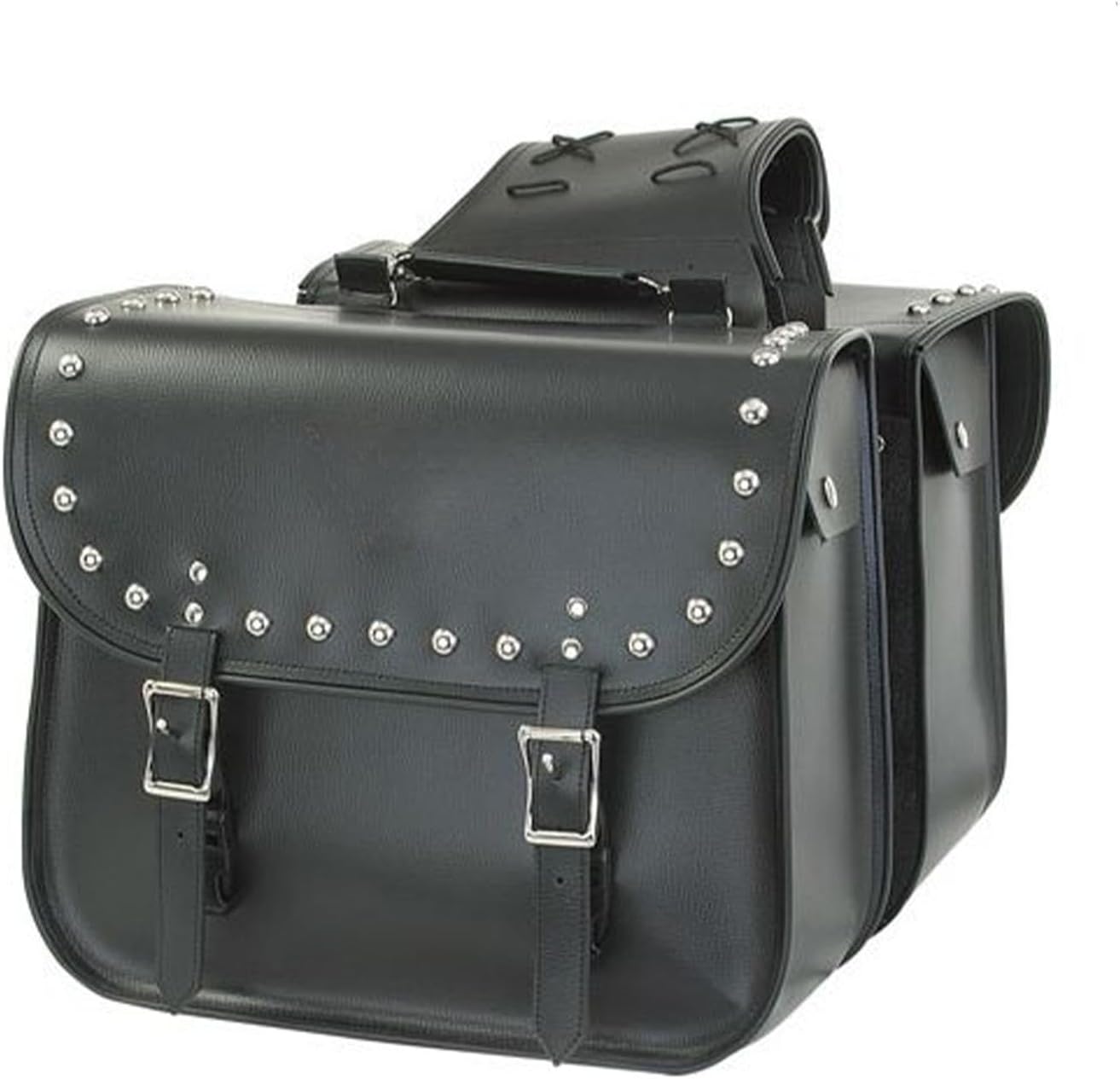 GARGOYLE BELLS Motorcycle Saddle Bags Leather Motorcycle Luggage Bag with Gun Holsters For Softails Sportsters and Choppers Waterproof Luggage Bags For Motorcycle (Black PVC - Style 2, With Studs)