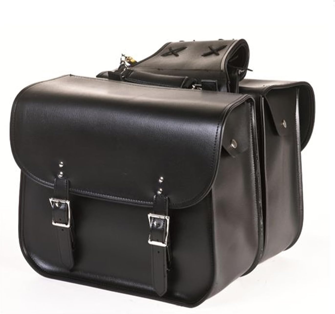 GARGOYLE BELLS Motorcycle Saddle Bags Leather Motorcycle Luggage Bag with Gun Holsters For Softails Sportsters and Choppers Waterproof Luggage Bags For Motorcycle (Black PVC - Style 2, No Studs)
