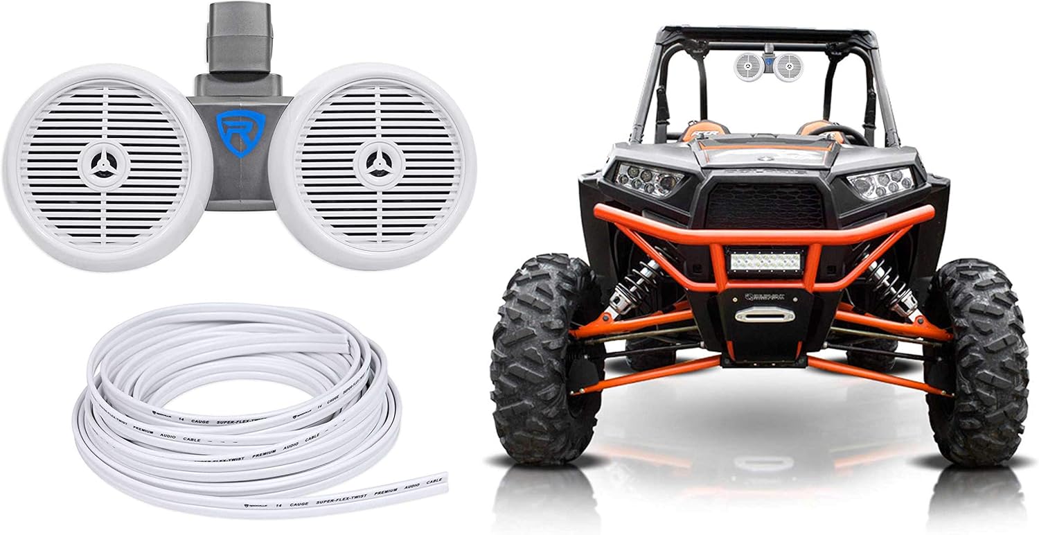 Rockville DWB65W Dual 6.5" 600w Tower Speaker for Polaris RZR/Jeep/ATV/UTV/Cart