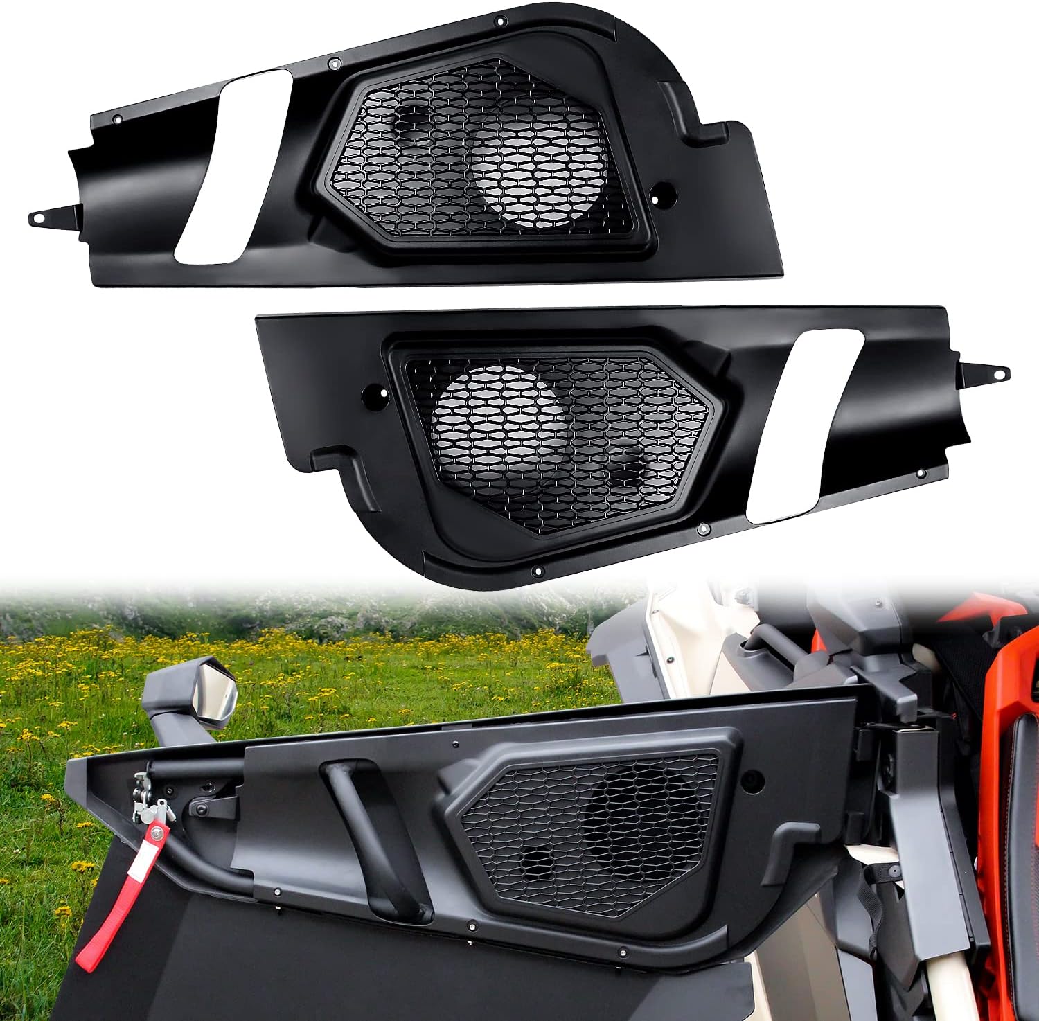 6.5 inch Front Door Speaker Pods Kit Compatible with Can Am Maverick X3 / X3 Max/Turbo/R 2017-2024 2025 All Models Accessories Stereo System Waterproof Speaker Mount Enclosure Panels (2pcs)