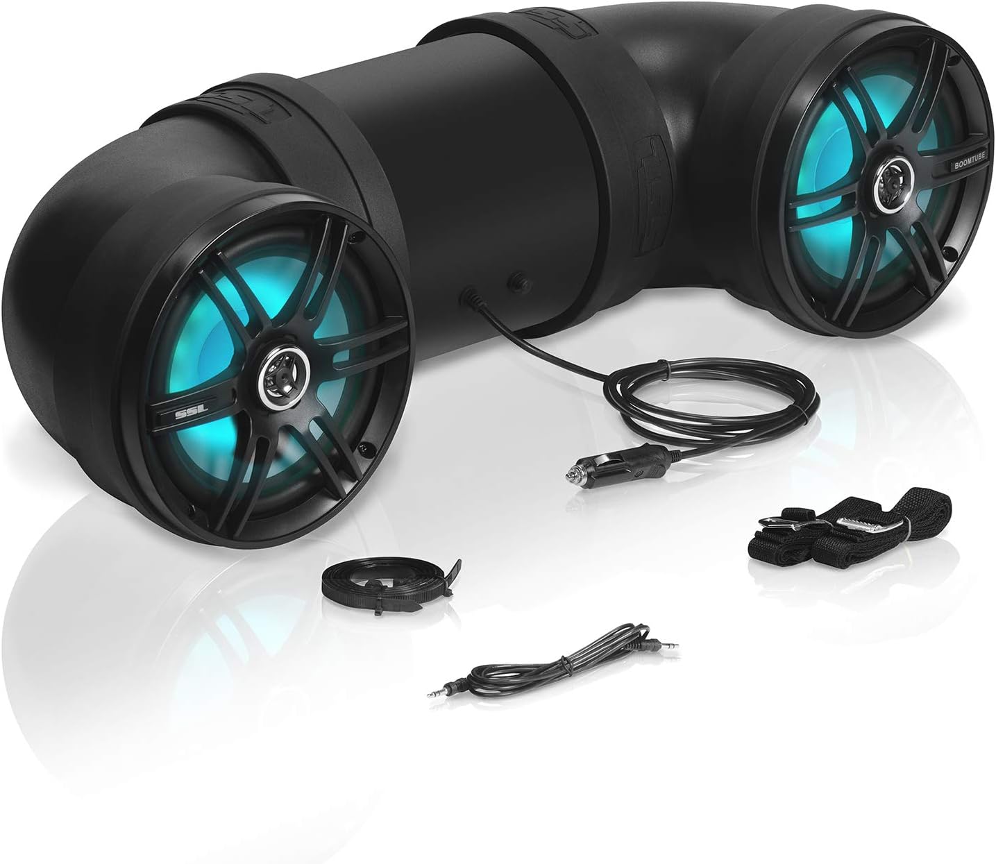Soundstorm BTB8L 8 Inch 700W Bluetooth Amplified Marine Powersports UTV ATV Tube Speaker System with LED Lights, Black