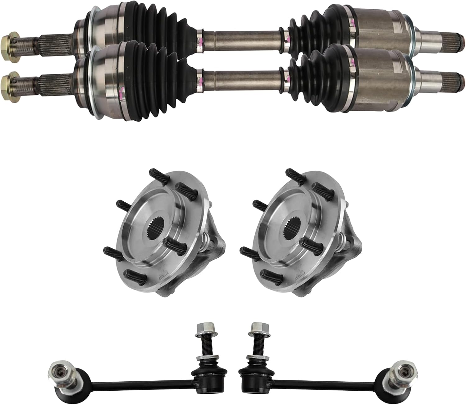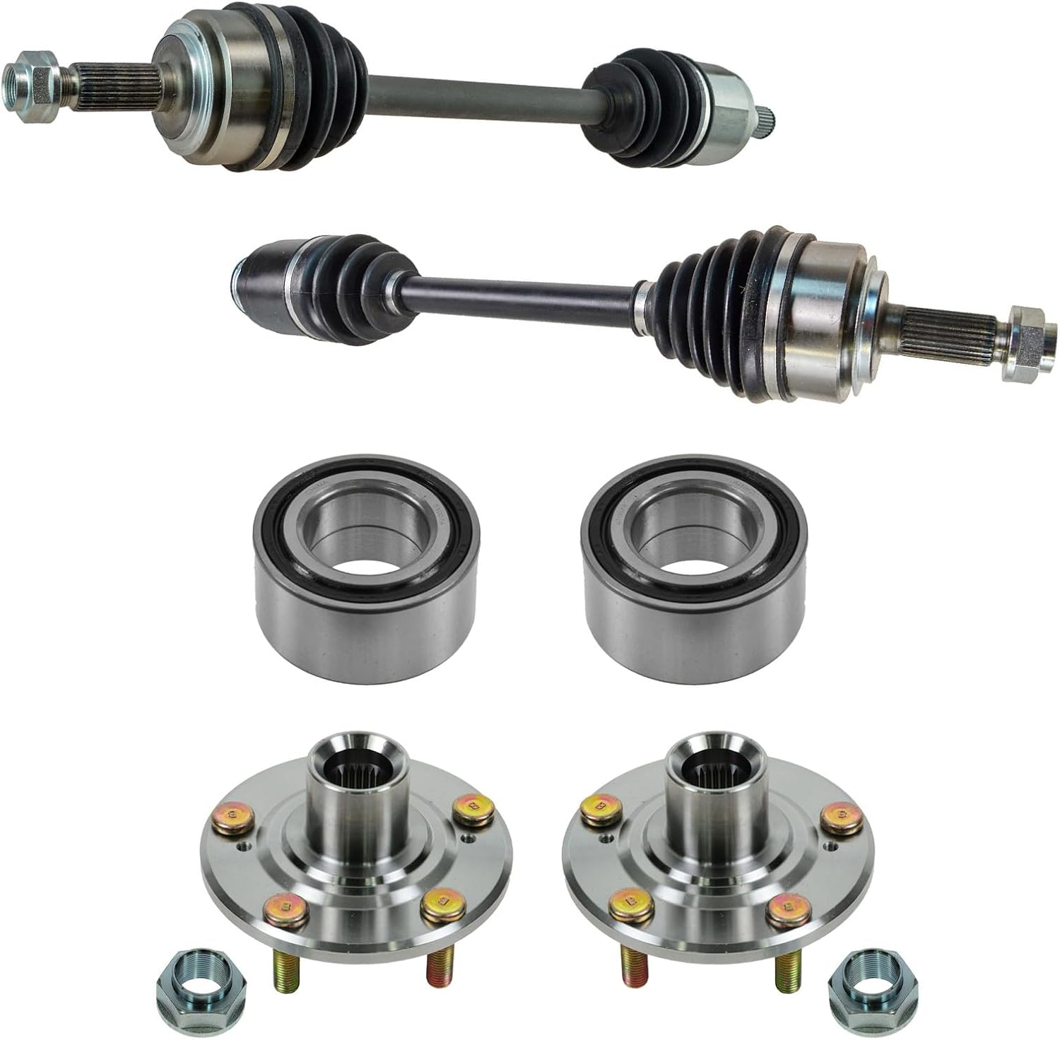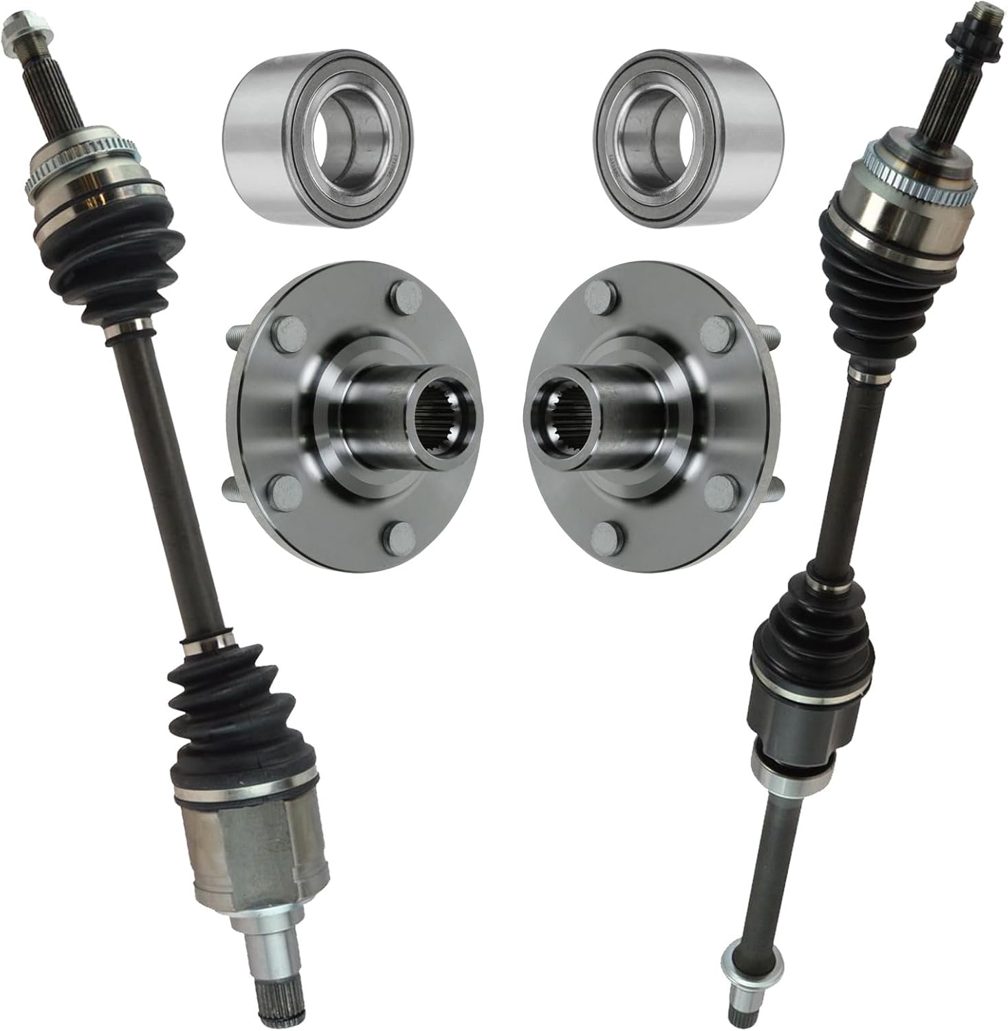 TRQ Front CV Axle Assemblies Wheel Bearings Wheel Hubs 6 Piece Compatible with 2004-2009 Toyota Camry 2001-2007 Highlander 2004-2008 Solara