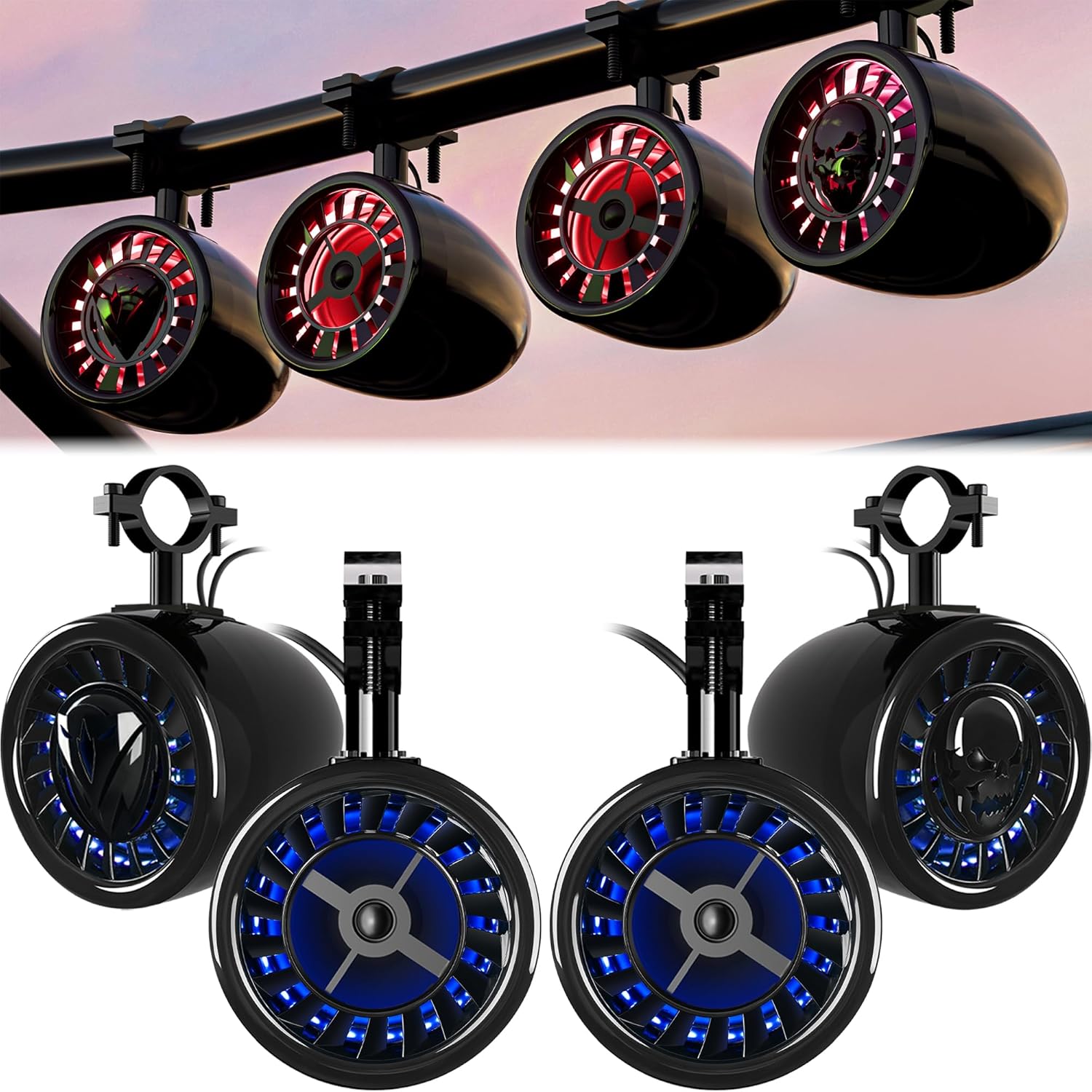 GoHawk Bluetooth UTV Stereo Audio Amplifier System with Waterproof LED 8 Speakers (4X Woofer & 4X Tweeter), Radio USB, Compatible with Roll Cage Bar for SXS RZR Polaris Can-Am Wildcat ATVs
