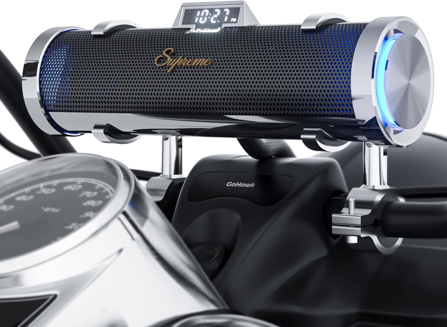 GoHawk Motorcycle Bluetooth Speakers | 8-Speaker Waterproof Stereo System w/ 4.25" External Speakers | Built-in Amplifier Aluminum Sound bar, FM Radio, USB, LED | Great for Harley, ATV, Chrome