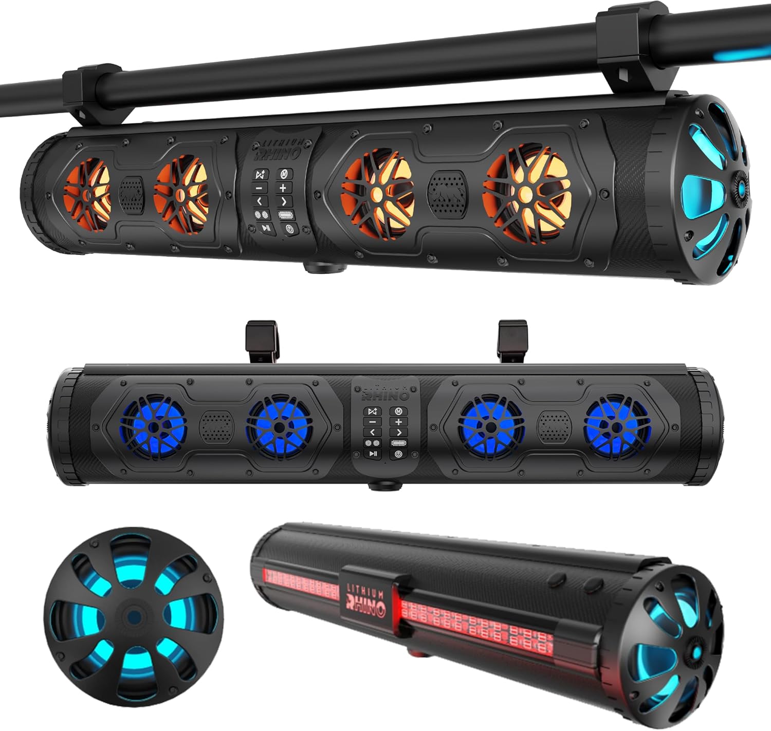 UTV Sound Bar Bluetooth with RGB Lighting, 28" Waterproof Golf Cart SoundBar, 8 Speaker HiFi 2.1HD Amplified Powersports Offroad ATV Sound Bar, Compatible LED Sound System Marine
