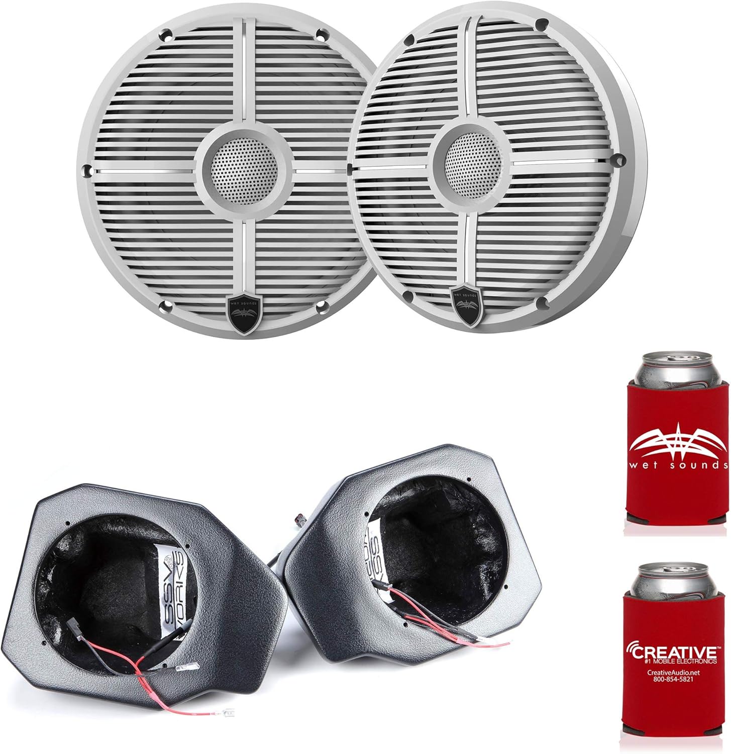 Wet Sounds Recon 6-XWW 6.5" White Grill Marine Speakers with RG4-F65U Ranger XP1000 2018 and up Front Speaker Pods