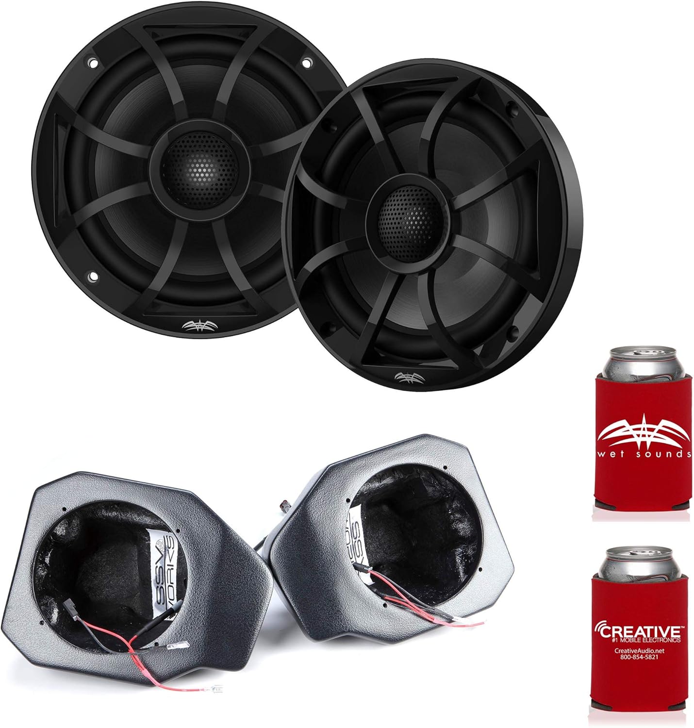 Wet Sounds Recon 6-BG 6.5" Black Grill Marine Speakers with RG4-F65U Ranger XP1000 2018 and up Front Speaker Pods