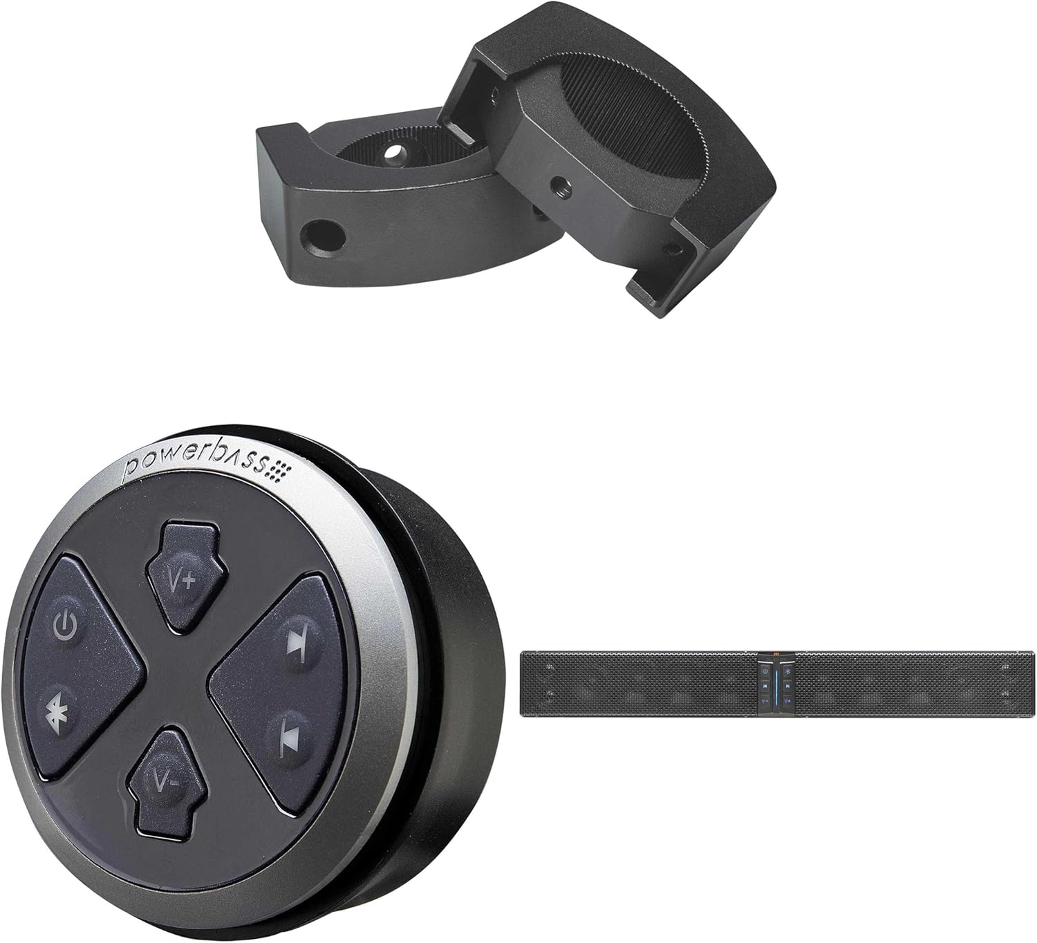 PowerBass XL-1250-12 Speaker System, Bluetooth Powersports Sound Bar with XL-SBCON - Wired Remote Controller & XL-SBCLAMP2 - XL Sound Bar Universal C-Clamps