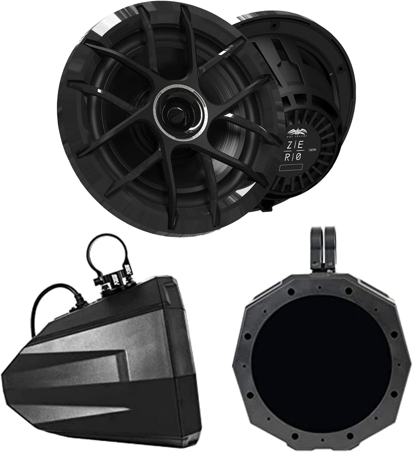 wet sounds ZERO-8-XZ-B-B Refurbished Black 8" Neodymium Powersport & Marine Speakers with Horn-Loaded Titanium Tweeters, Pair with SSV Works US2-C8U-150 Universal Cage Mount 8” Speaker