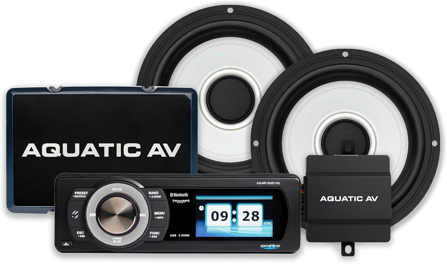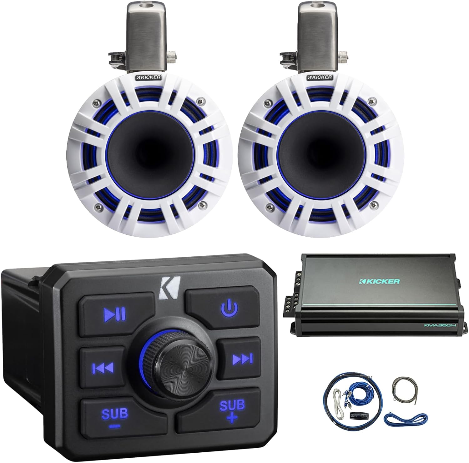 KICKER 51KBTR Marine Bluetooth Powersport USB/AUX Sub RCA Outputs Receiver, 2X 6.5 300W Max LED Tower System Speakers, 4-Channel 90 Watts x 4 Weather-Resistant Full-Range Amplifier W/Kit (White)