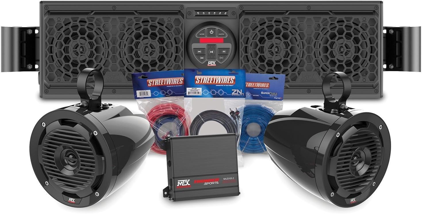 MTX RZRBOAKIT2 Polaris RZR Bluetooth Overhead Audio Sound Bar with 2-Channel Amplifier and 2 Roll Cage Speaker System
