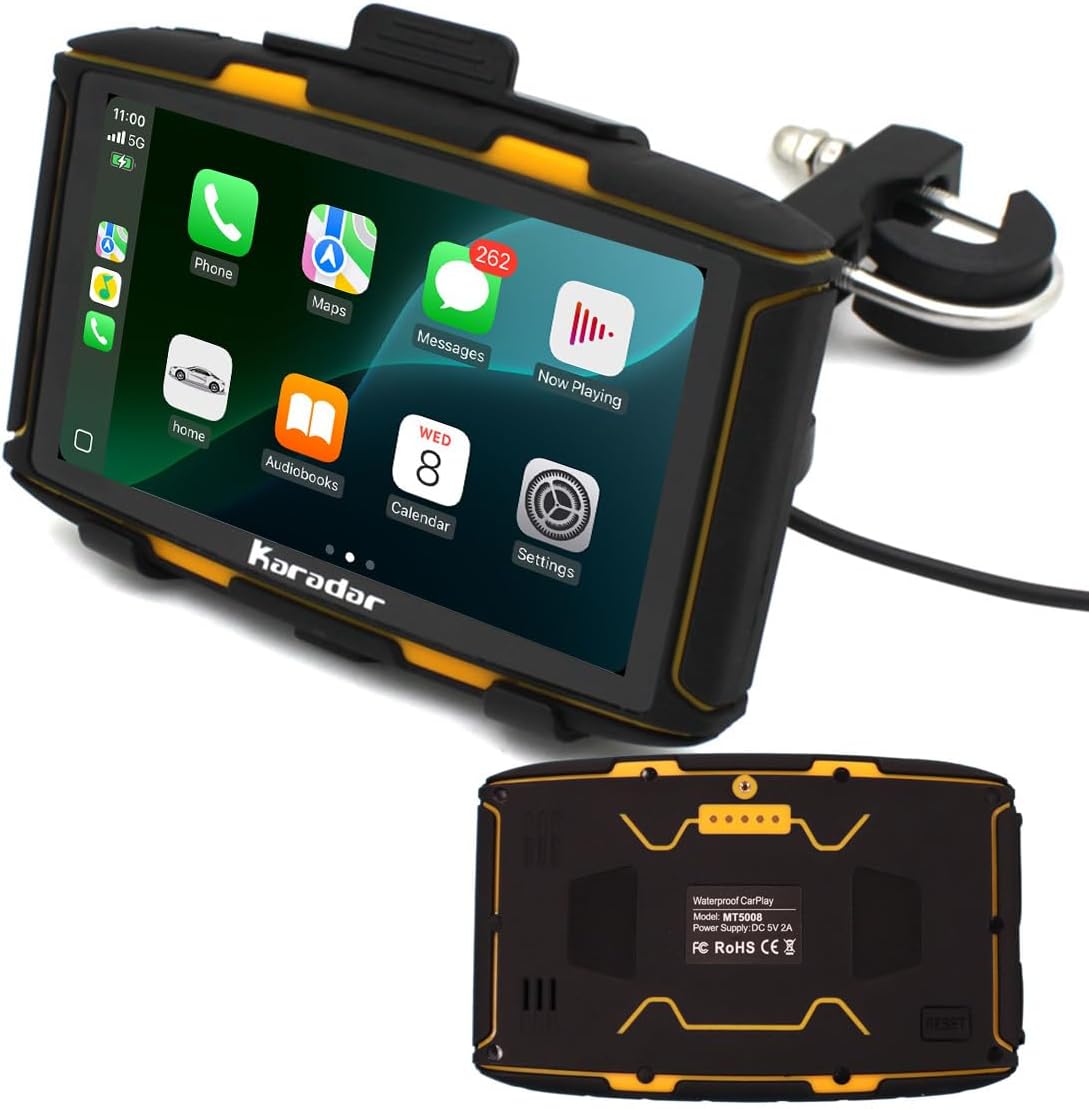 MT5008 5-Inch Waterproof Motorcycle Touch Screen GPS – CarPlay & Android Auto, Bluetooth Intercom, Real-Time Navigation, Shockproof Metal Mount, Voice Control