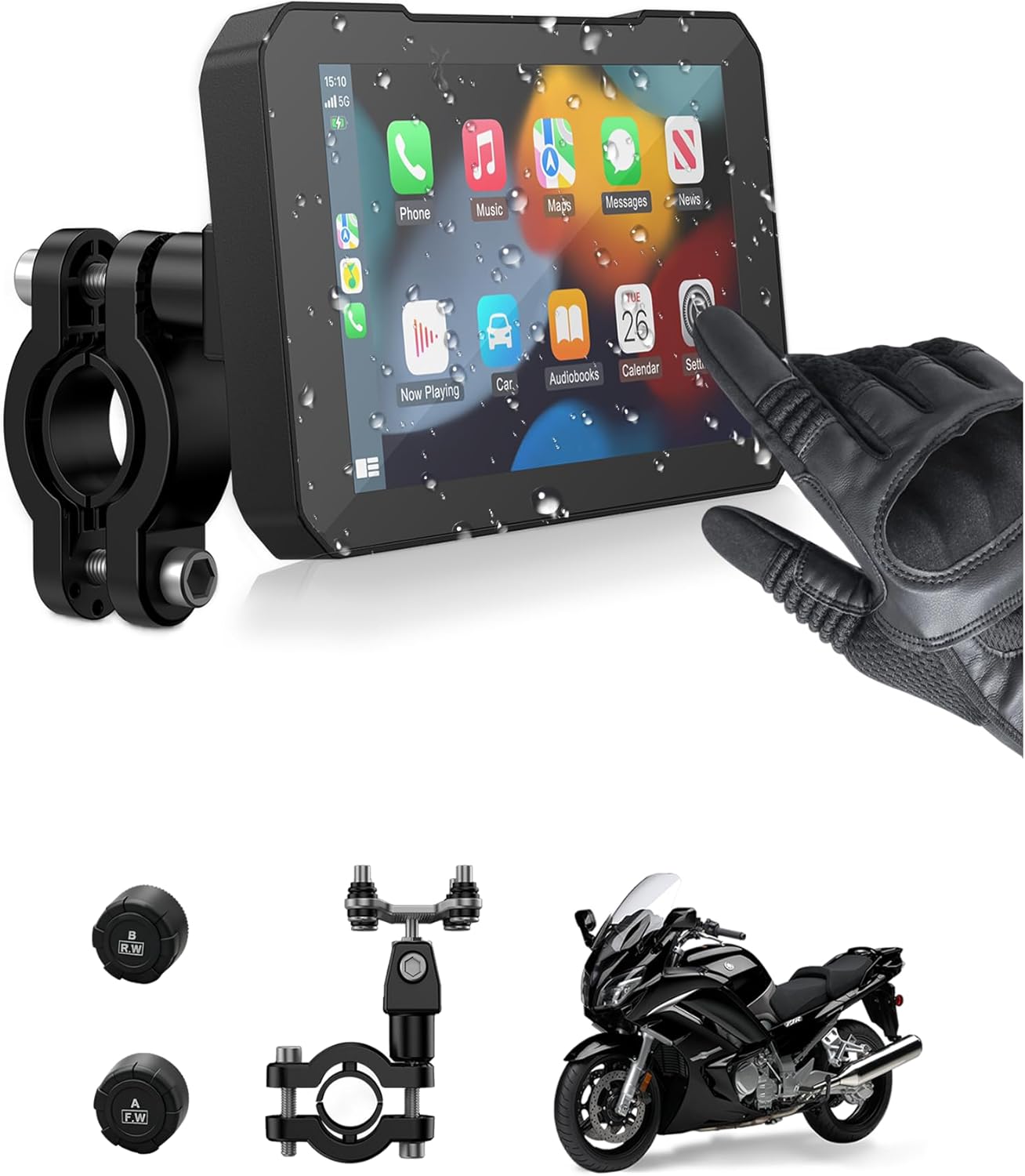 C3 Plus Motorcycle Carplay, 5-inch HD Touchscreen, GPS Navigation System with Apple CarPlay & Android Auto, IP67 Waterproof, Support Siri(for CarPlay only), Real-Time TPMS