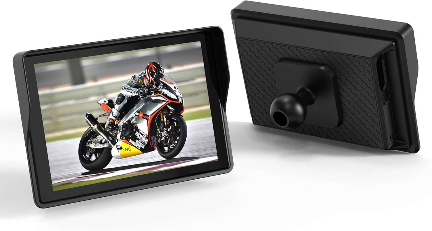Motorcycle CarPlay System with 5.0 Inch IPS Touch Screen, 1080P Front and Rear Cameras, WiFi, Bluetooth 4.0, IP67 Waterproof