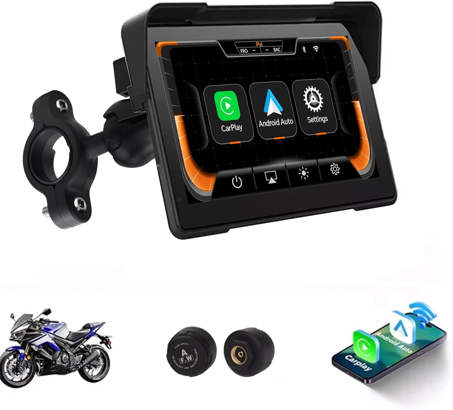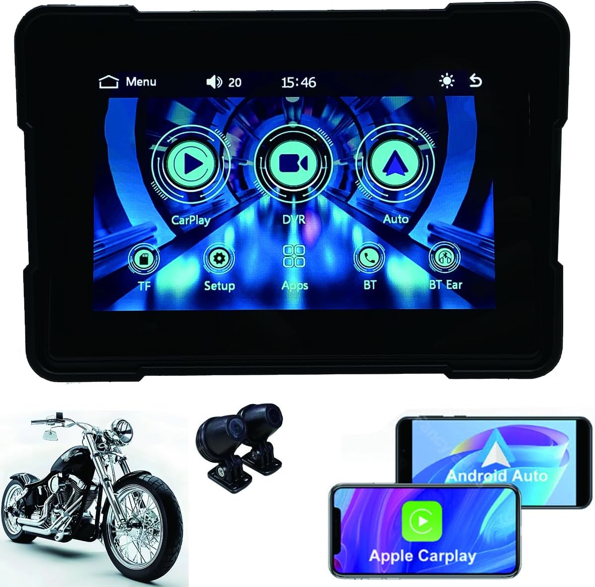 5 Inch Carplay Screen Motorcycle Portable Recorder Navigator,CarPlay & Android Auto,Dual Bluetooth,Motorbike Navigation Smart Screen