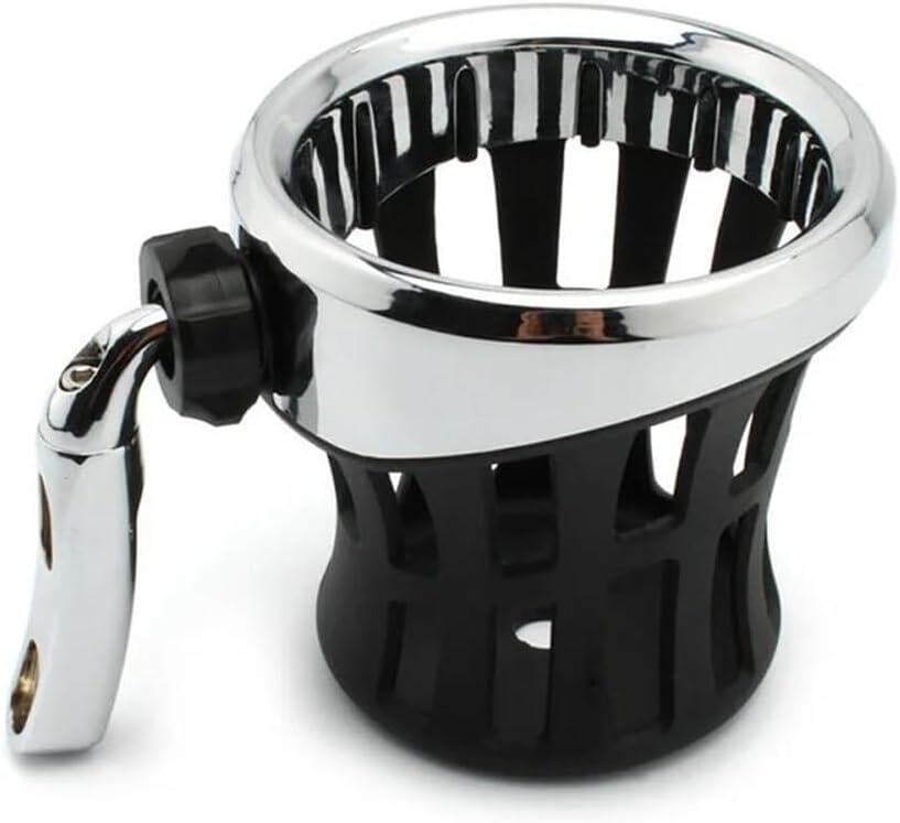 Motorcycle Handlebar Cup Holder with Mesh Basket Aluminum Drink Basket Brake Perch Mount Cup Holder(Chrome)