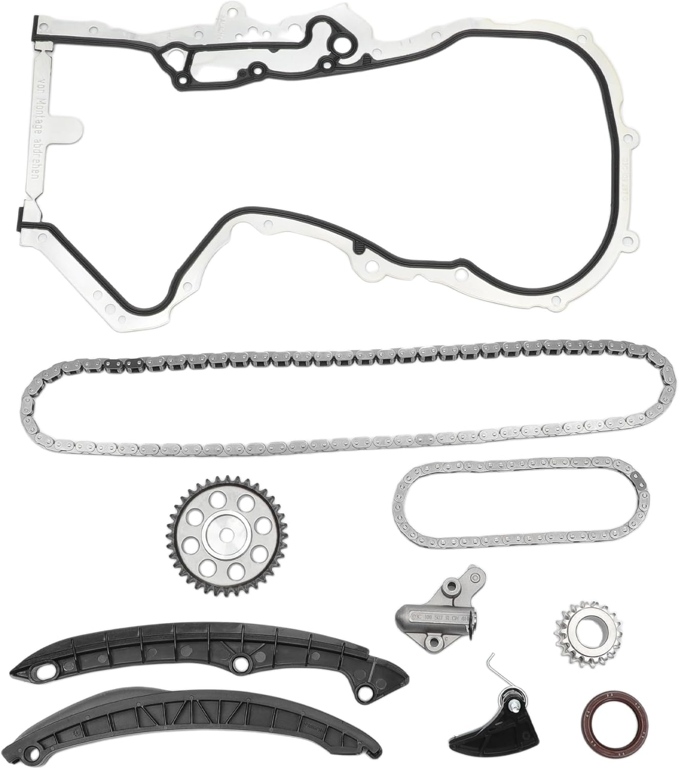 1 Set Timing Chain Kit 03C109158A for Audi A1 2011-2014 1.4L Long-lasting Sealing Metal Plastic Silver Tone Timing Cover Gasket Tensioner Guide Pulley