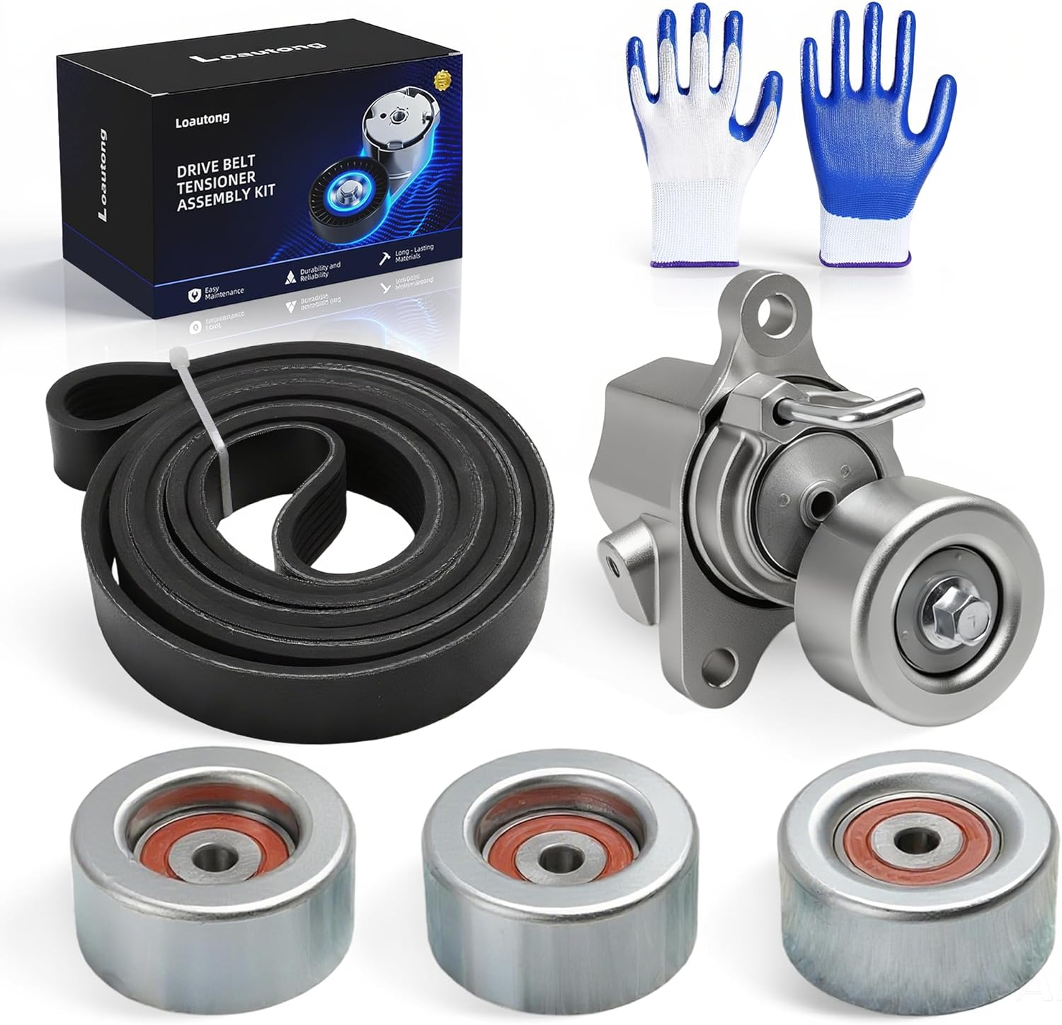 Belt Tensioner Serpentine Belt Idler Pulley Kit for Chevrolet Malibu 3.5L V6 2004-2006, for Pontiac G6 3.5L V6 2005-2006, 36347, 38104, 12563097, 38009, 9202550, 10044867, 12563083