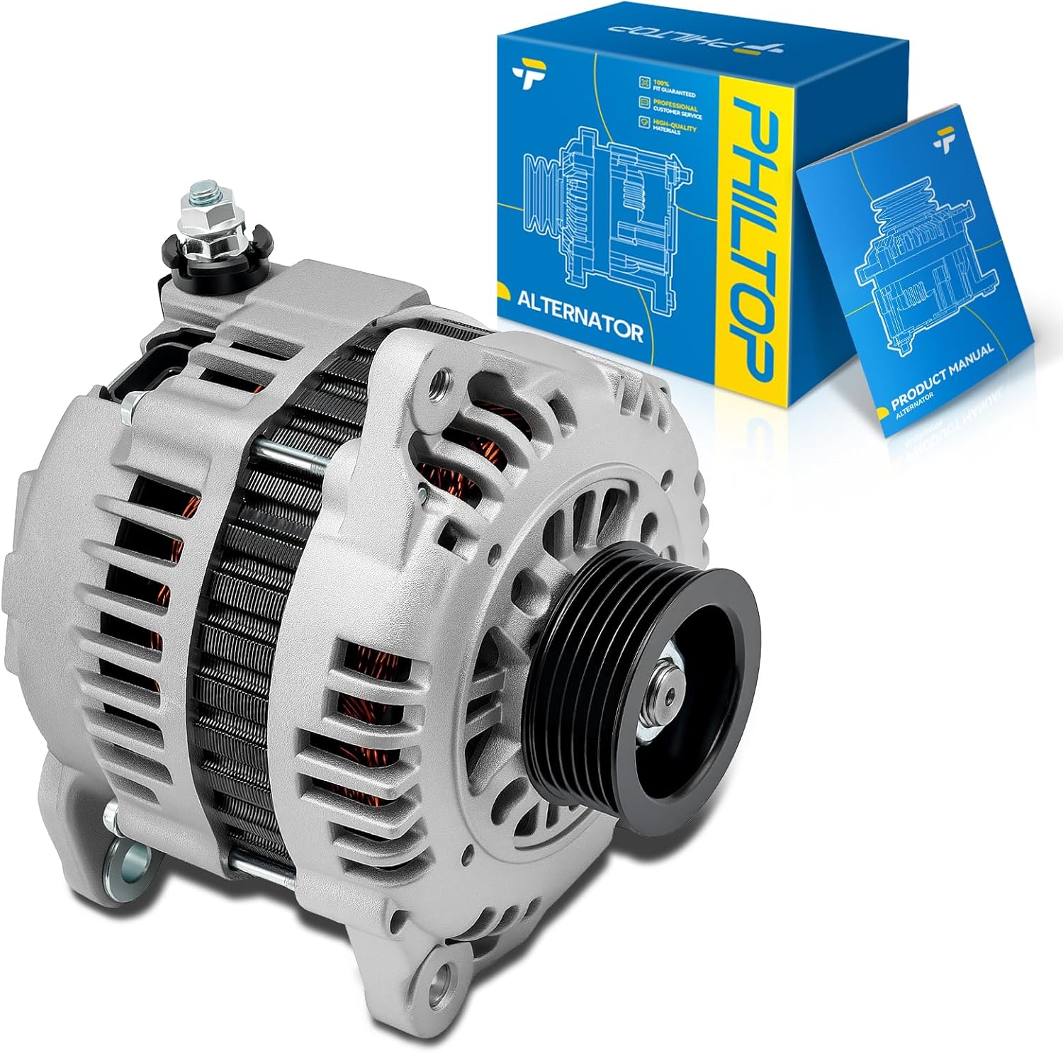 PHILTOP Alternator Compatible with Nissan Altima 2002-2006 3.5L High Amp Alternators Replace 13940N 12V 110Amp CW S6 6-Groove Pulley