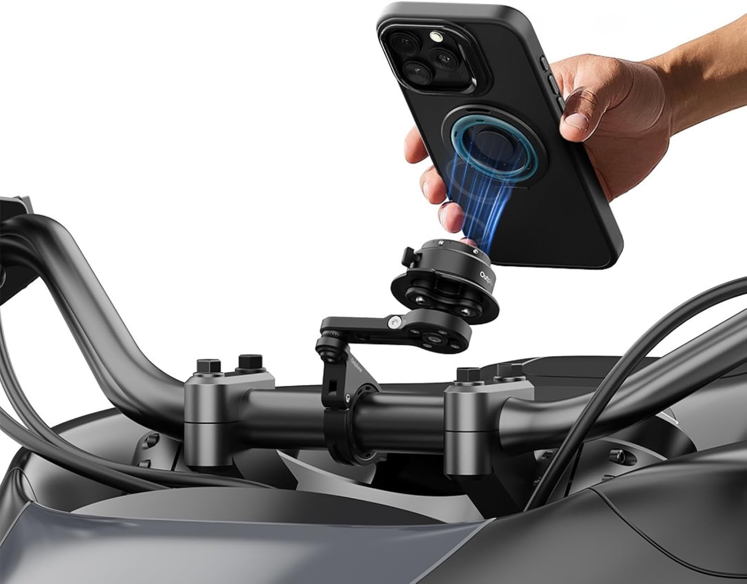 Quick Launch Magnetic Motorcycle Phone Mount Phone Case for iPhone15, Anti-Vibration Quick-Release Handlebar Bracket with Secure Lock, 360°Blind Installation (QM01)