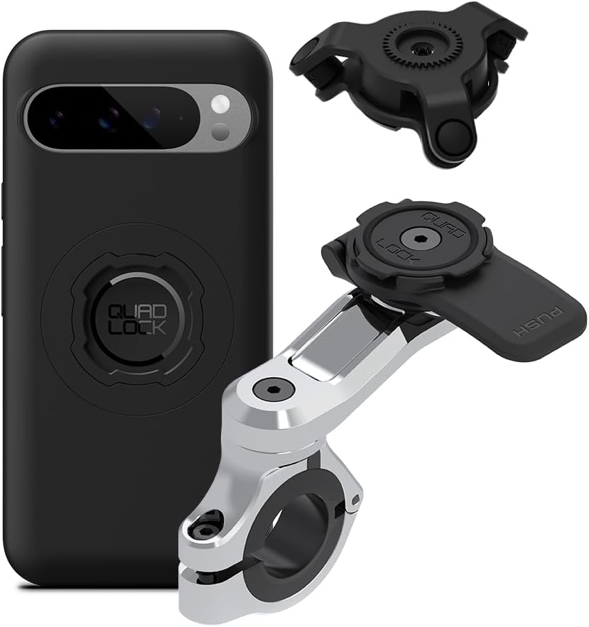 Quad Lock Motorcycle Handlebar Phone Mount PRO Chrome with Vibration Dampener and MAG Phone Case for Pixel 9 Pro XL