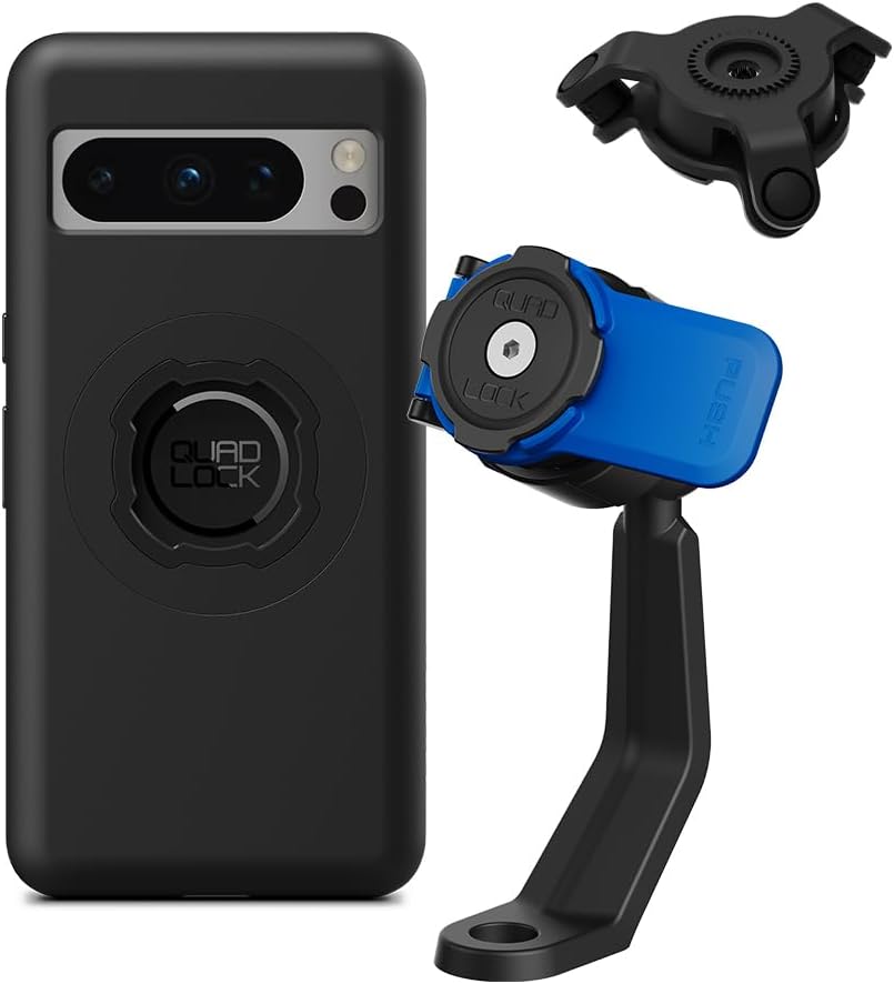 Quad Lock Mirror Stem Motorcycle Phone Mount with Vibration Dampener and MAG Phone Case for Pixel 8 Pro
