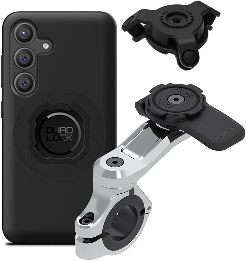 Quad Lock Motorcycle Handlebar Phone Mount PRO Chrome with Vibration Dampener and MAG Phone Case for Galaxy S24