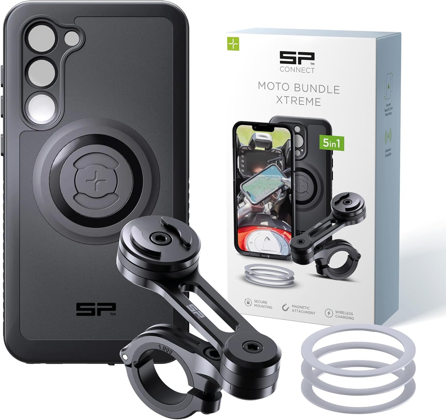 SP CONNECT Moto Bundle II Xtreme | SPC+ | Compatible with Samsung S23+ | Phone Mount for Motorcycle | Motorcycle Phone Holder | Handlebars
