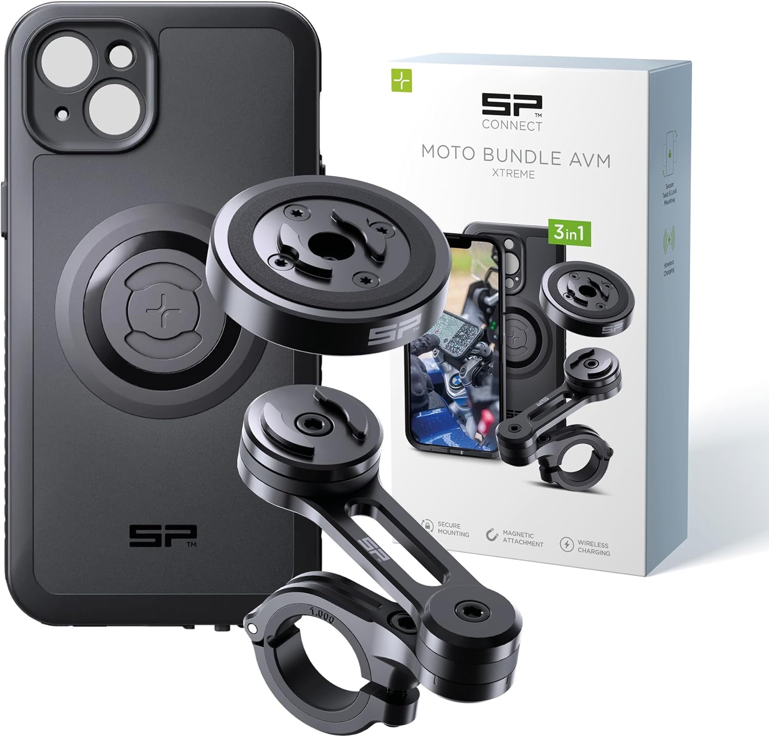 SP CONNECT Moto Bundle II AVM Xtreme | SPC+ |Compatible with iPhone 15 Plus | Phone Mount for Motorcycle | Motorcycle Phone Holder | Handlebars