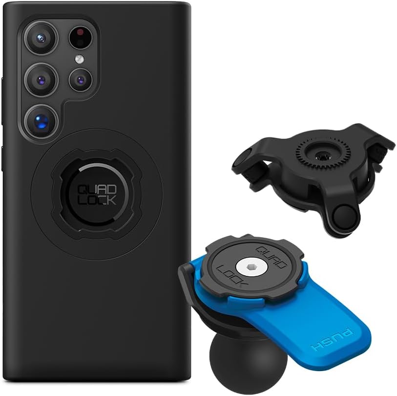 Quad Lock 1" Ball Adaptor for Motorcycle Phone Mount with Vibration Dampener and MAG Phone Case for Galaxy S24 Ultra