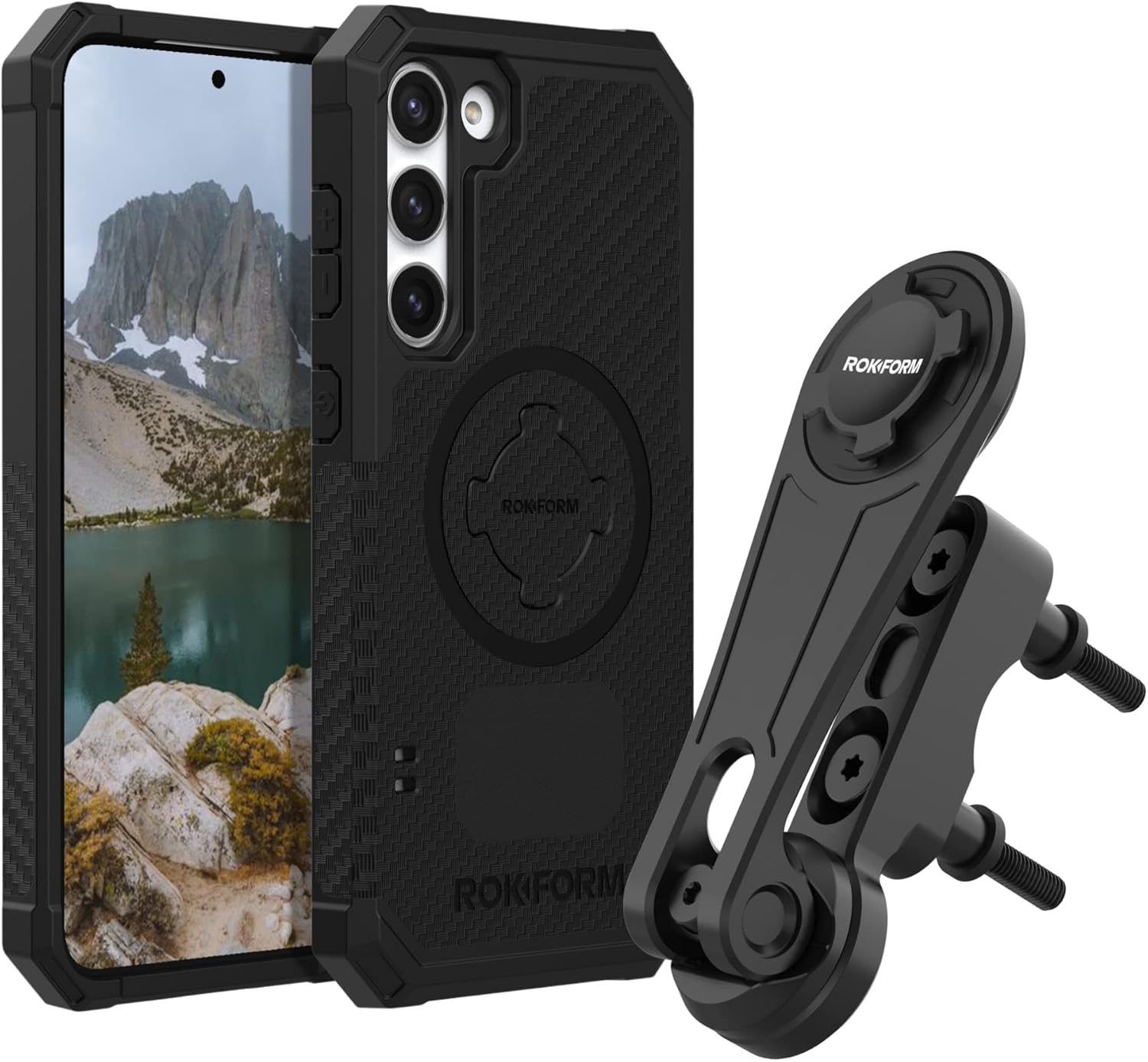 Rokform - Galaxy S23 Rugged Case + Black Motorcycle Perch Phone Mount