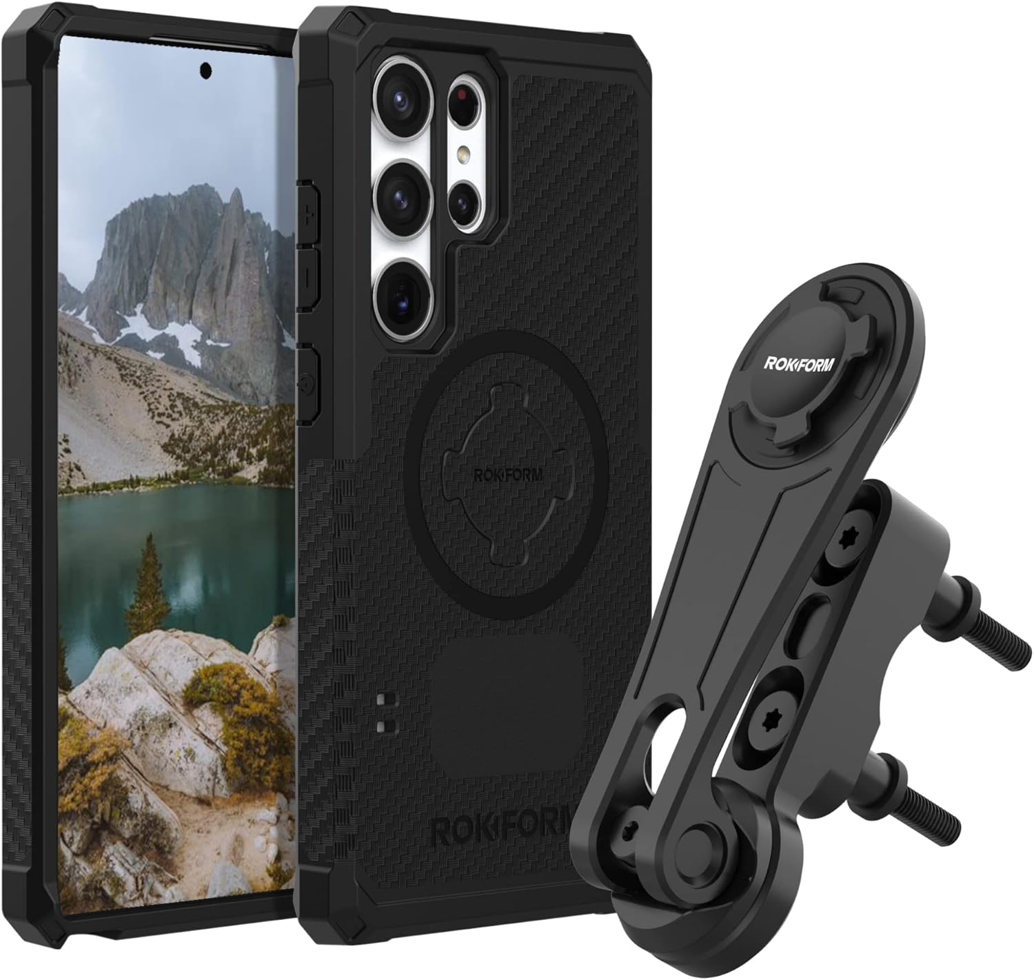 Rokform - Galaxy S23 Ultra Rugged Case + Black Motorcycle Perch Phone Mount