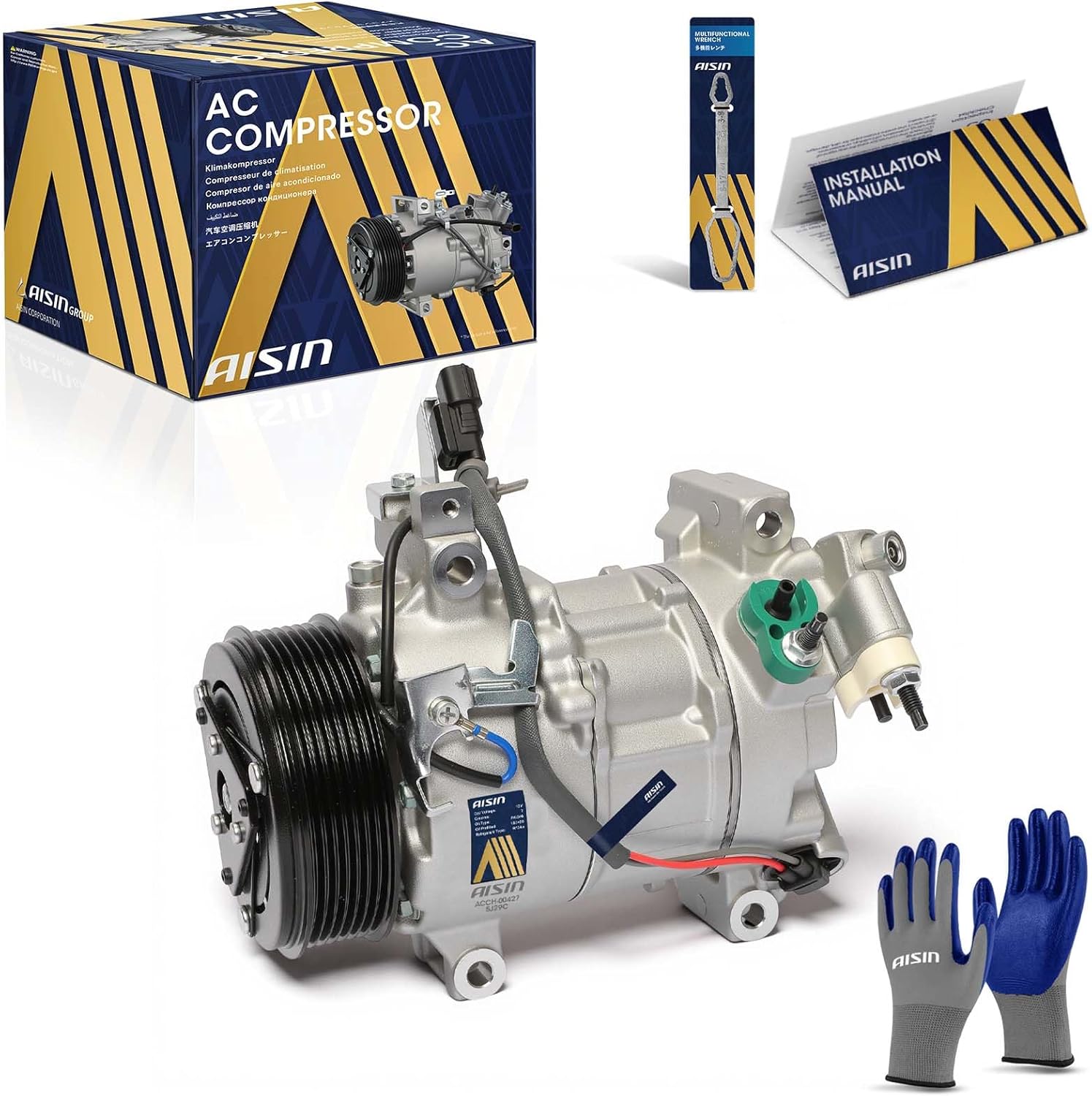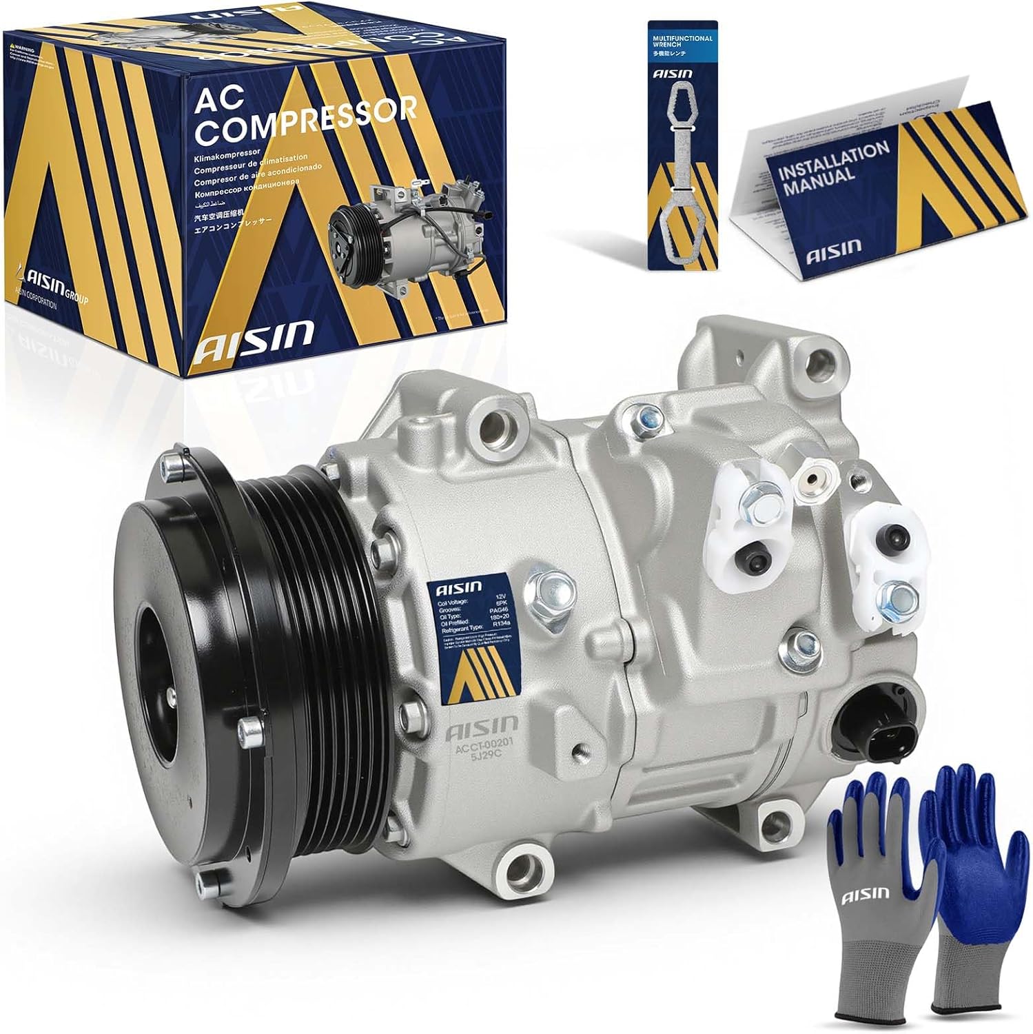 AISIN ACCT-00201 Air Conditioner AC Compressor - Compatible with Toyota Highlander 2009-2013 2.7L, Venza 2009-2016 2.7L - with 6-Pulley Groove, with Clutch