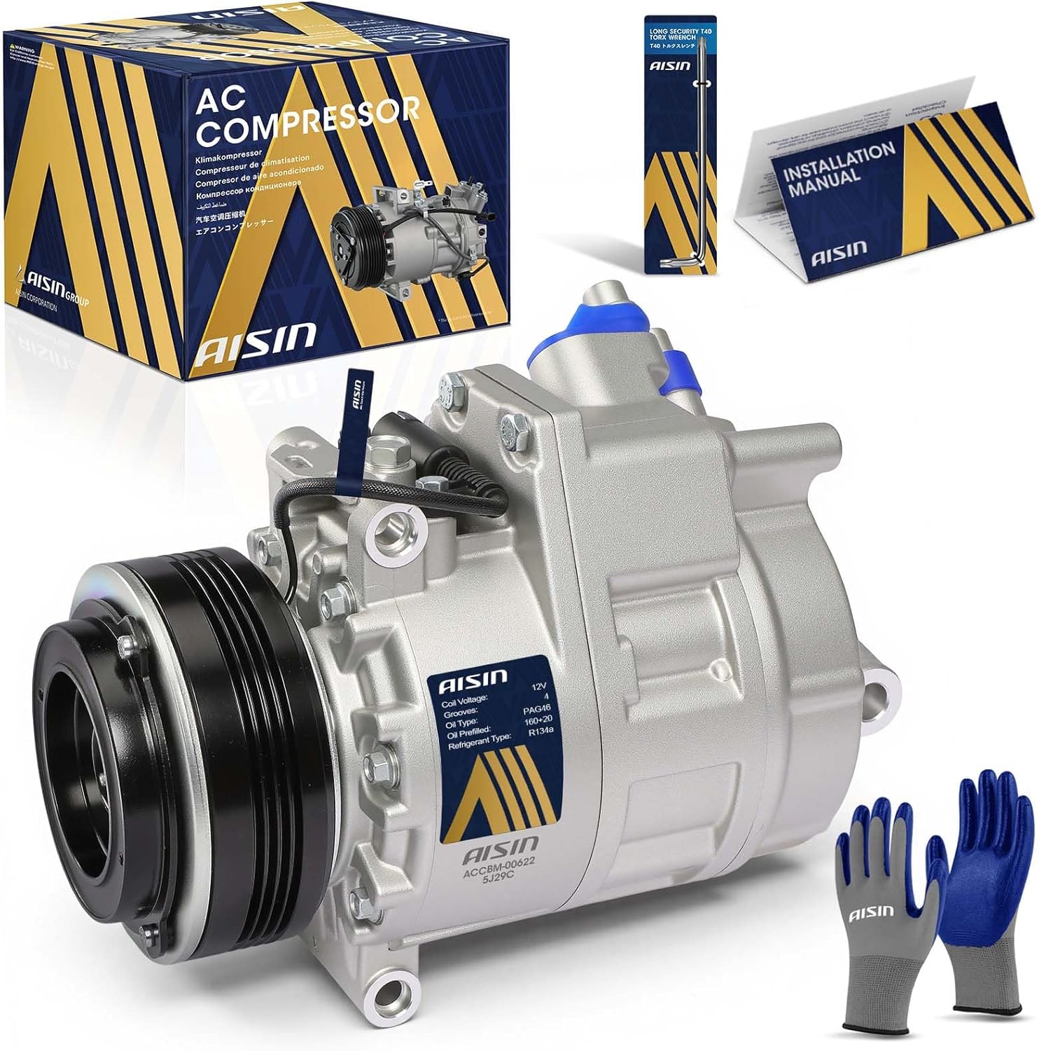 AISIN ACCBM-00622 Air Conditioner AC Compressor - Compatible with BMW X5 2003-2006 3.0L - with 4-Pulley Groove, with Clutch