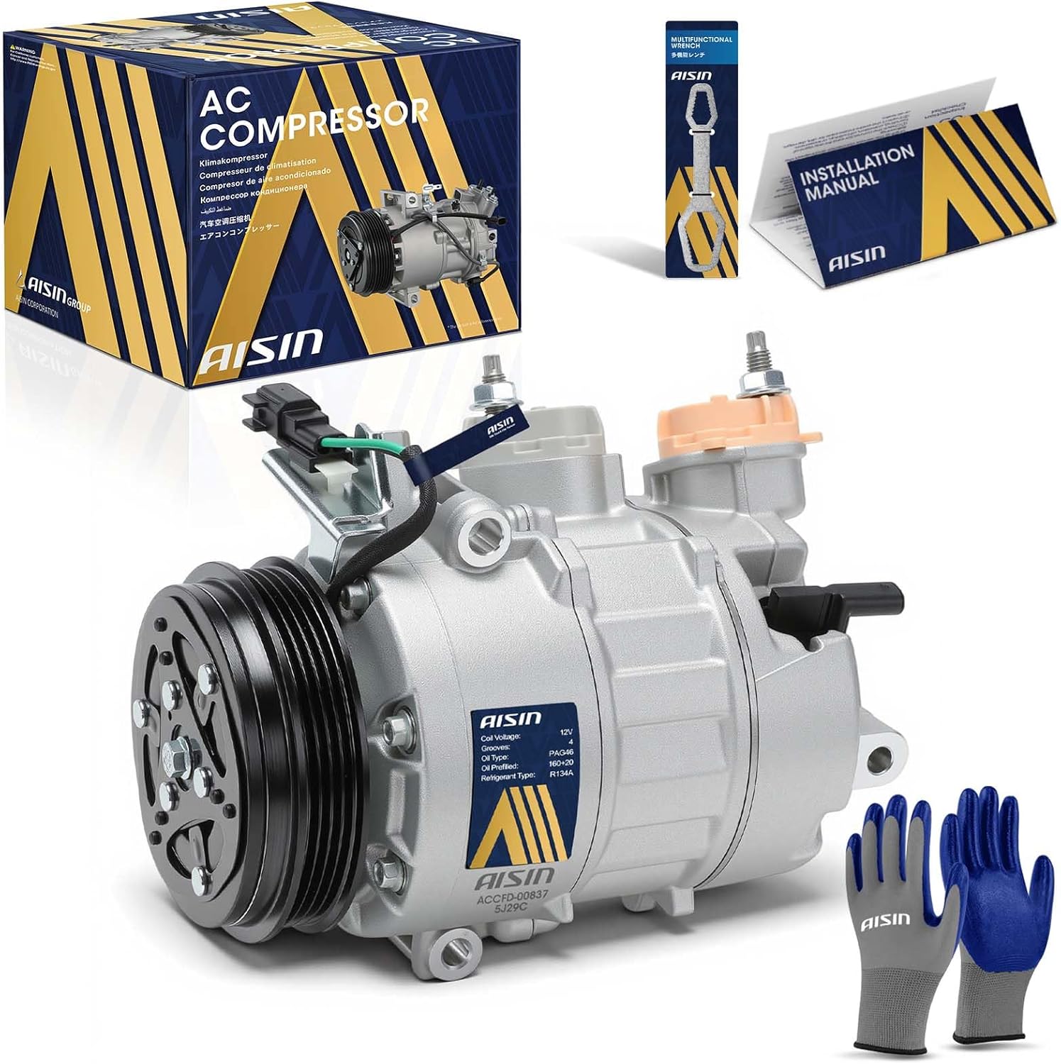AISIN ACCFD-00837 Air Conditioner AC Compressor - Compatible with Ford Transit Connect 2019-2023 2.0L - with 4-Pulley Groove, with Clutch