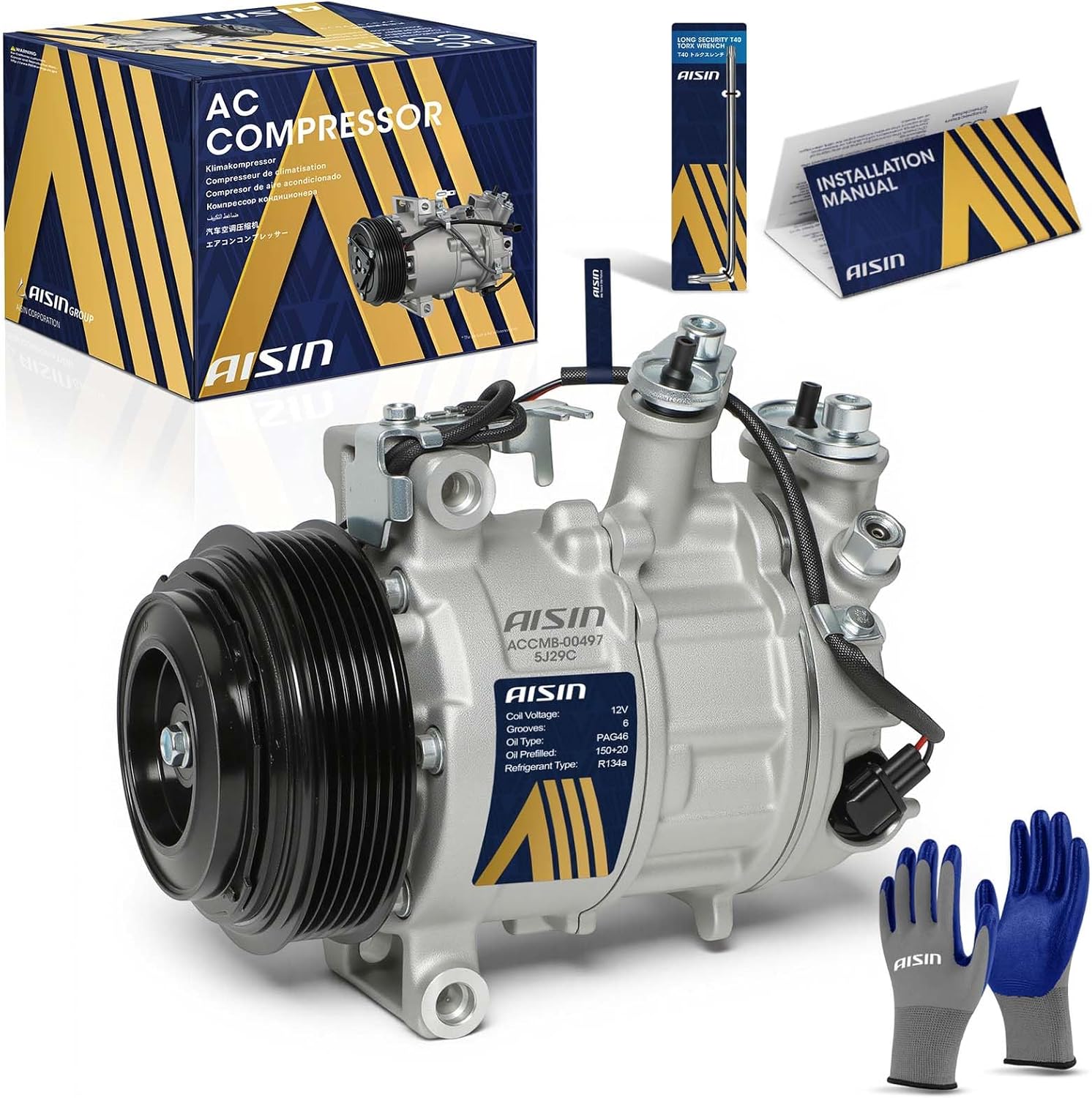 AISIN ACCMB-00497 Air Conditioner AC Compressor - Compatible with Mercedes-Benz C250 C300 C350e C63 AMG S E200 E250 E300 W205 W213 C253 R172 - with 6-Pulley Groove, with Clutch