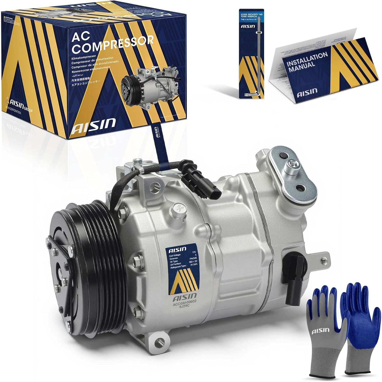 AISIN ACCGM-00002 Air Conditioner AC Compressor - Compatible with GMC Acadia 2020-2023 2.0L - with 5-Groove Pulley, with Clutch