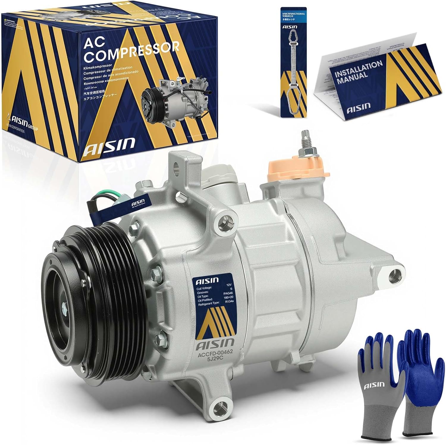 AISIN ACCFD-00462 Air Conditioner AC Compressor - Compatible with Ford F-150 2018-2021 3.0L 5.0L - with 6-Pulley Groove, with Clutch