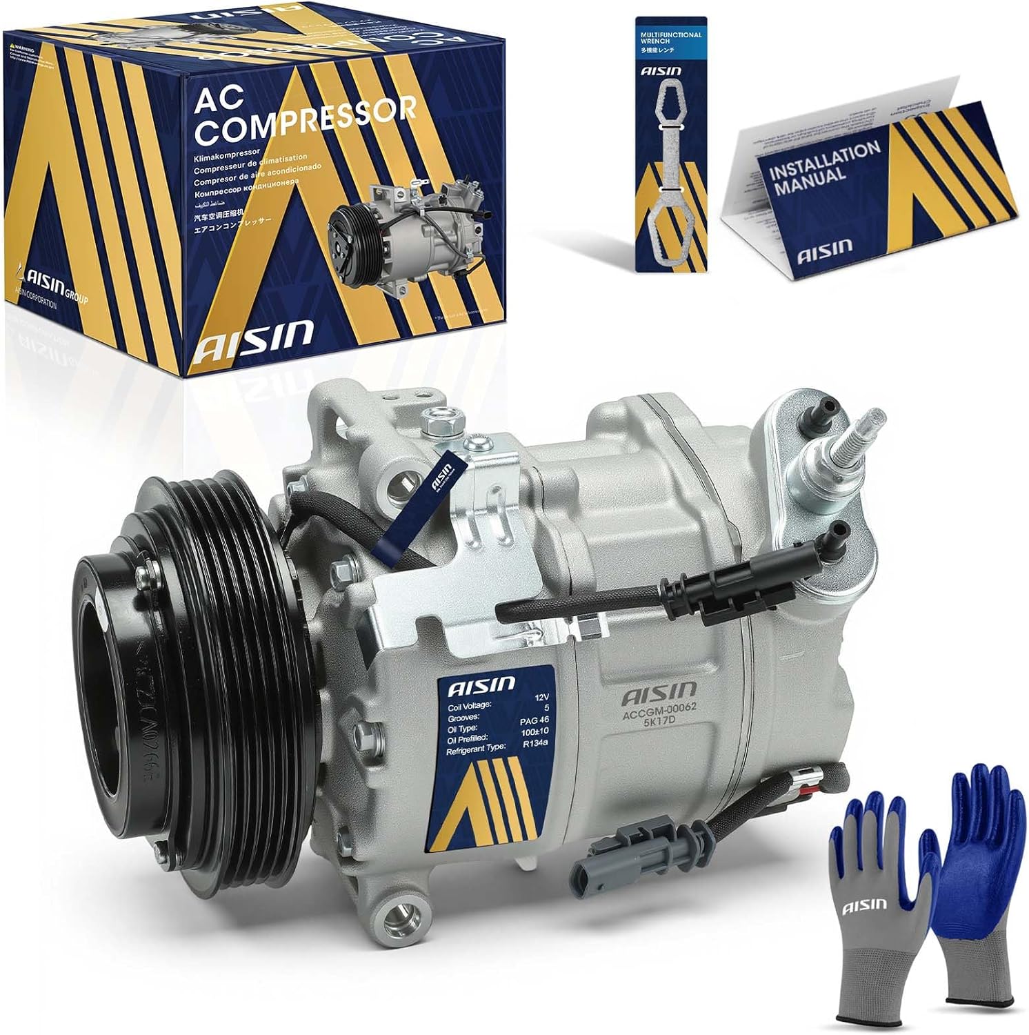 AISIN ACCGM-00062 Air Conditioner AC Compressor - Compatible with Chevrolet Equinox 2012-2015 2.4L, GMC Terrain 2012-2015 2.4L - with 5-Pulley Groove, with Clutch