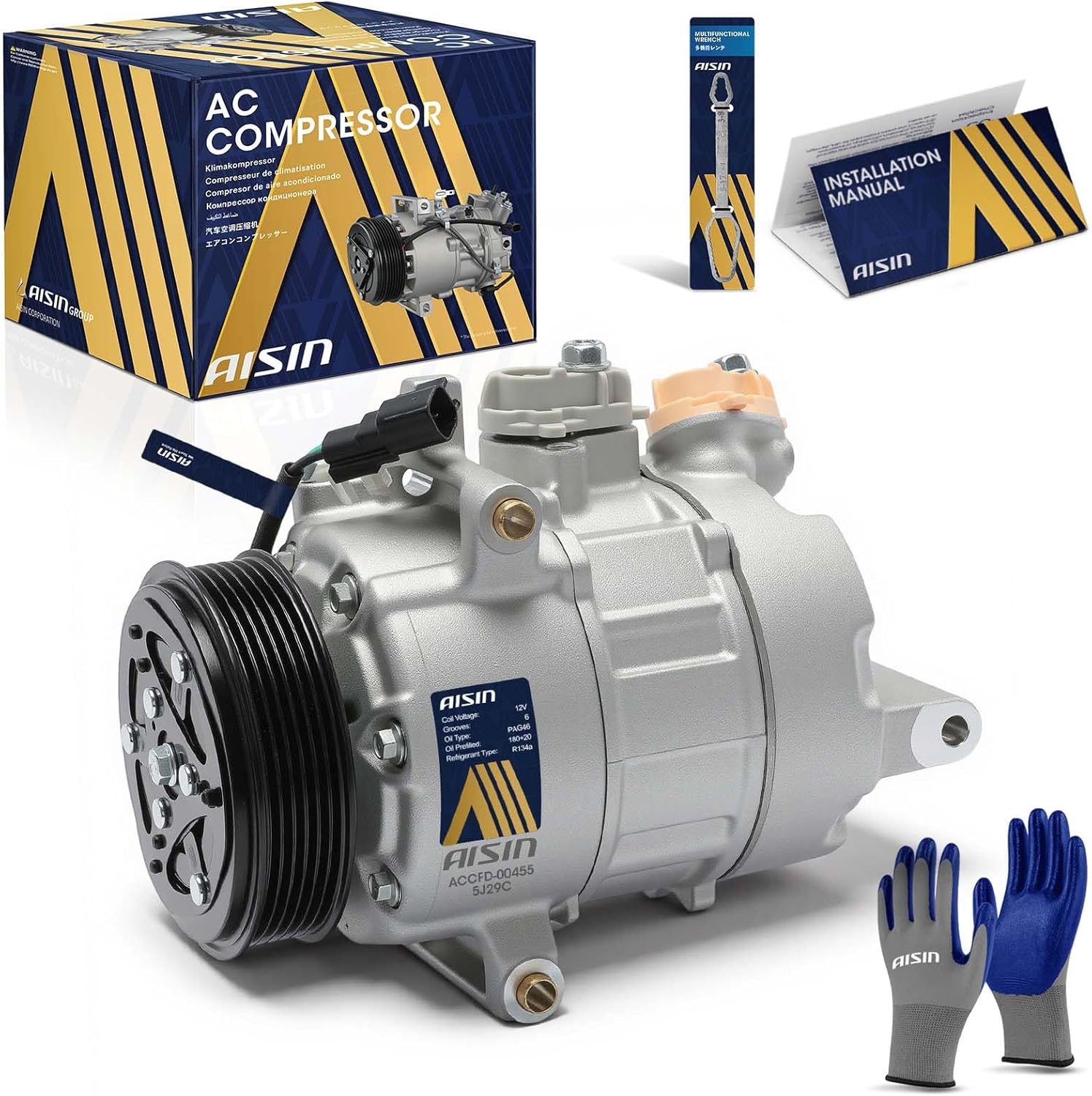 AISIN ACCFD-00455 Air Conditioner AC Compressor - Compatible with Ford F-150 2021-2024 2.7L - with 6-Pulley Groove, with Clutch