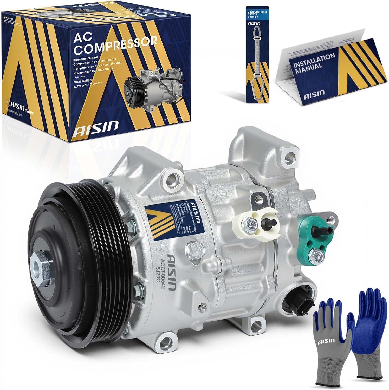 AISIN ACCT-00642 Air Conditioner AC Compressor - Compatible with Toyota Camry 18-23, RAV4 13-23, Highlander 14-19, Avalon 2021, Lexus RX350 2023, NX200t 15-17 - with 6-Pulley Groove, with Clutch