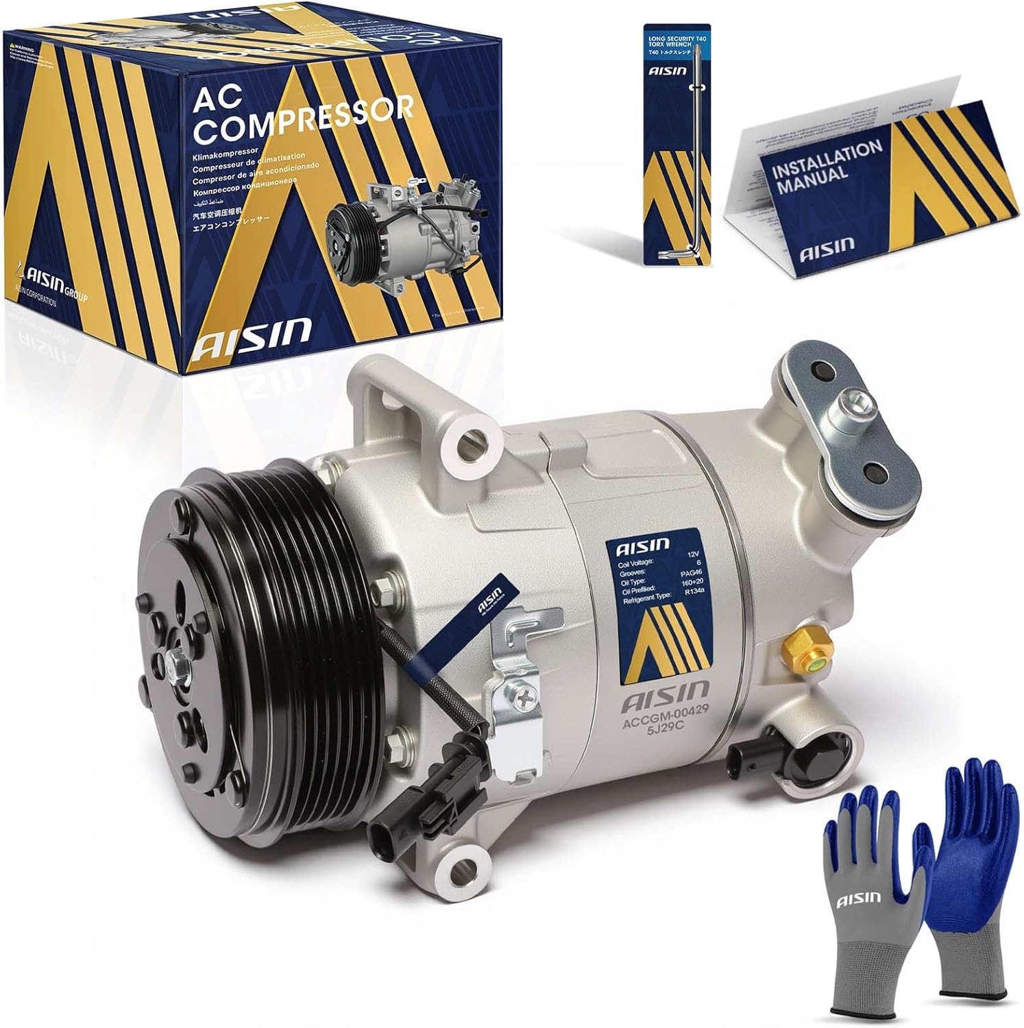AISIN ACCGM-00429 Air Conditioner AC Compressor - Compatible with Chevrolet Equinox 2018-2019 1.6L, GMC Terrain 2018-2019 1.6L - with 6-Pulley Groove, with Clutch