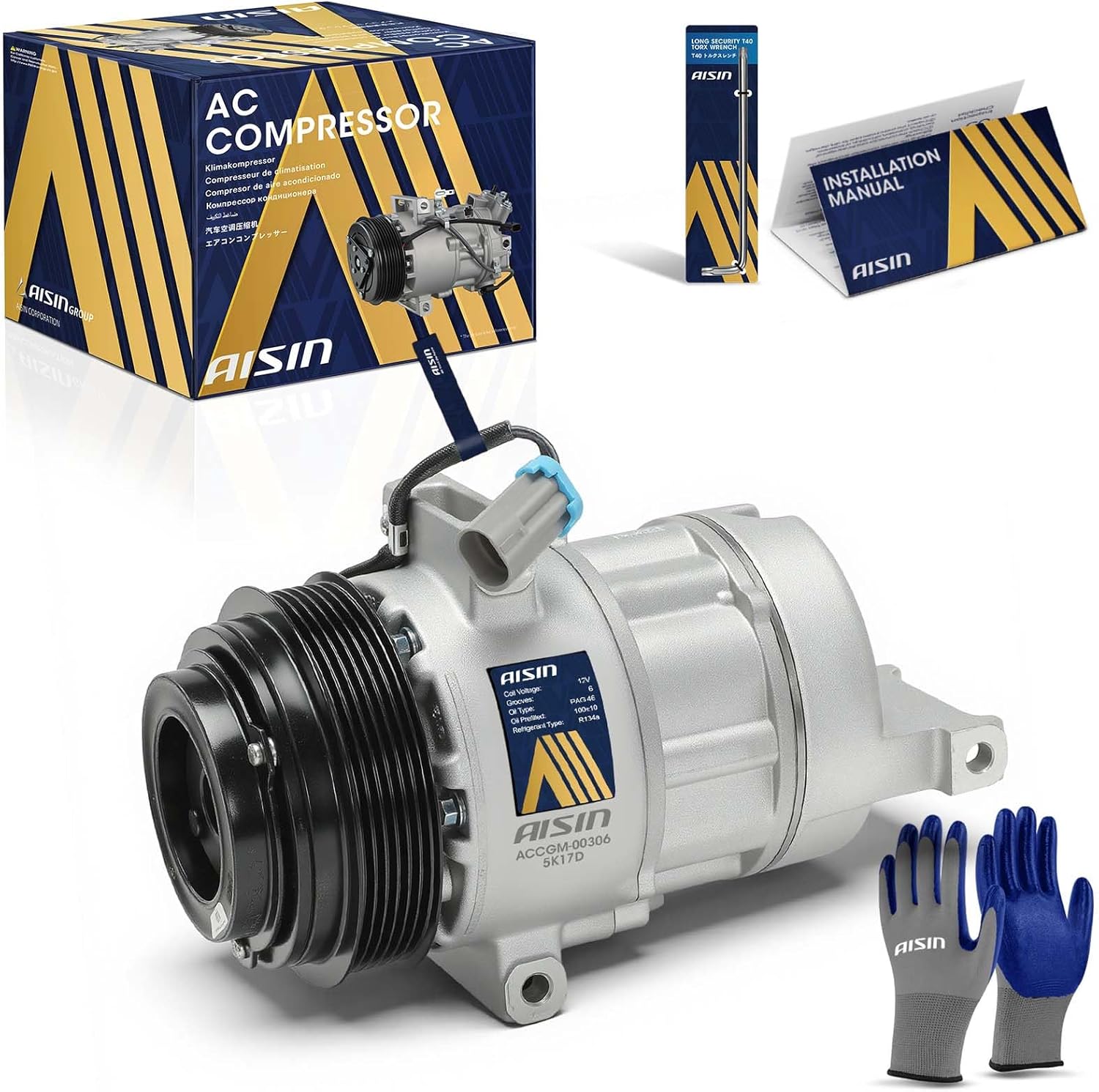 AISIN ACCGM-00020 Air Conditioner AC Compressor - Compatible with Chevrolet Impala 2018-2020 2.5L 3.6L, Cadillac XTS 2018-2019 3.6L - with 6-Pulley Groove, with Clutch