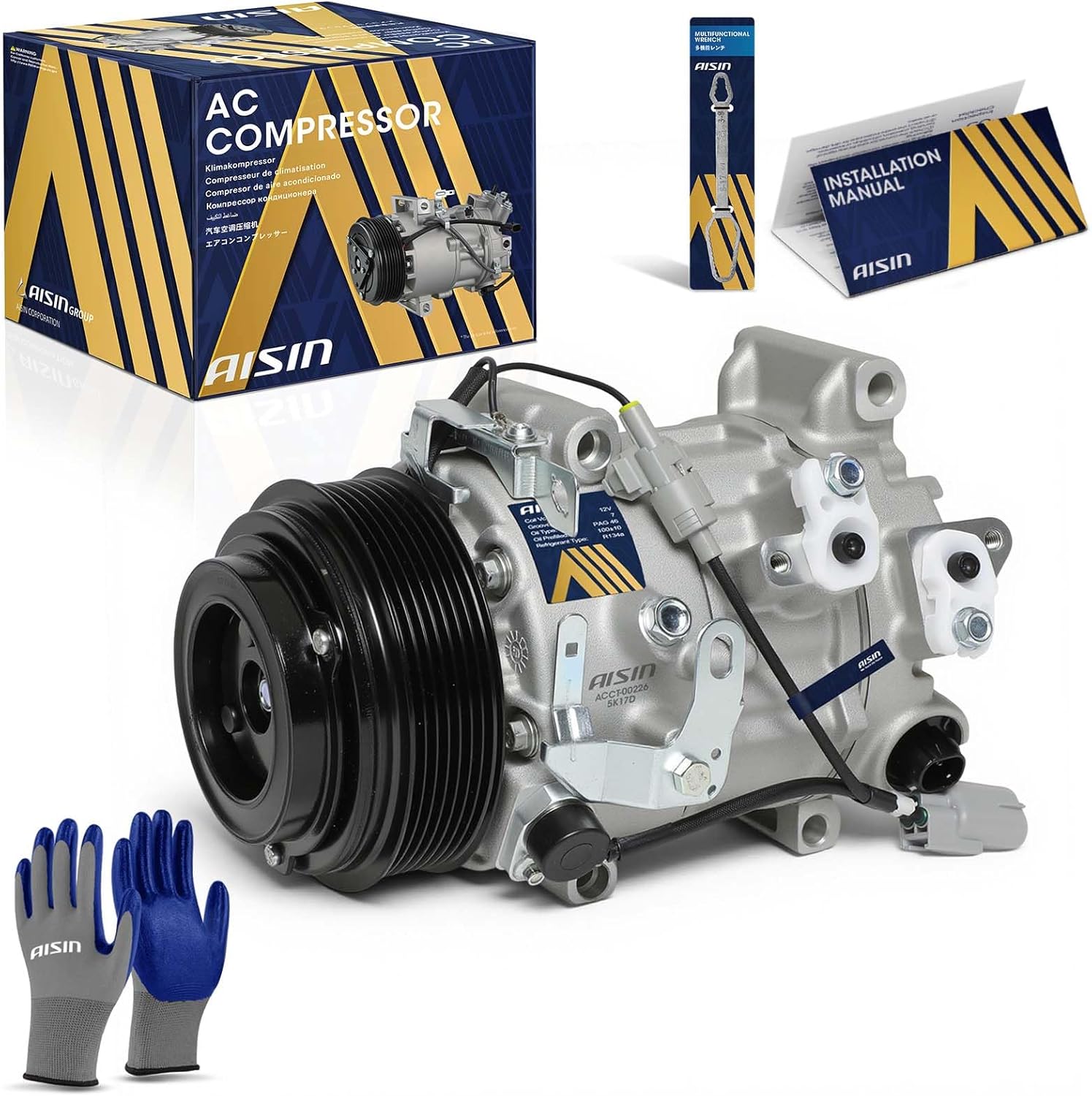 AISIN ACCT-00226 Air Conditioner AC Compressor - Compatible with Toyota Highlander 14-16, Lexus RX350 16-19, RX350L 18-19, RC200t 16-17, RC300 18-20 - 2.0L 3.5L - with 7-Pulley Groove, with Clutch