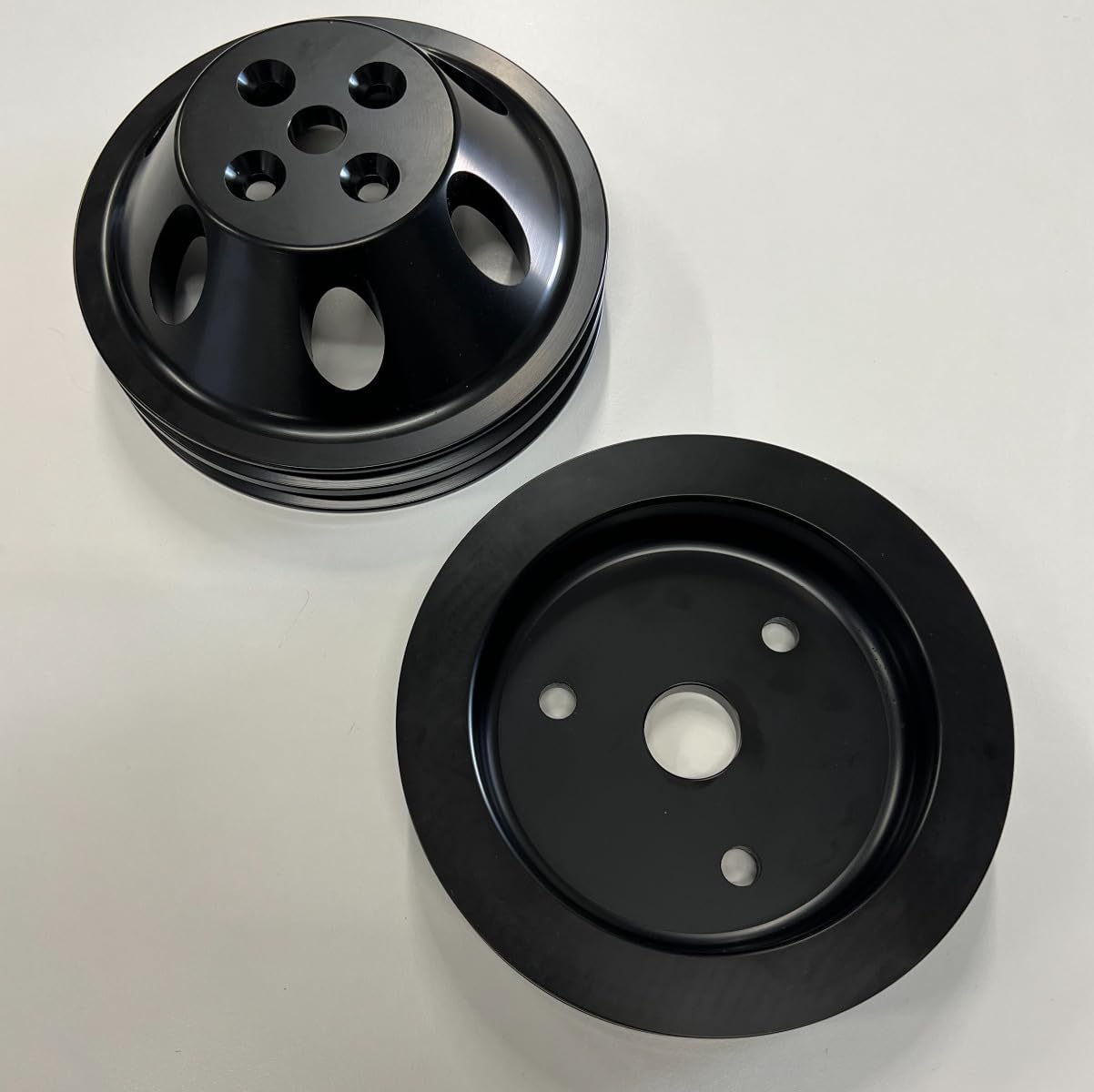 Pirate Mfg Double Groove Pulley Kit, Fits Chevy SBC Short Water Pump, Black Aluminum, 283 327 350 V8