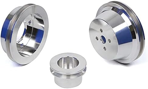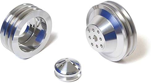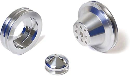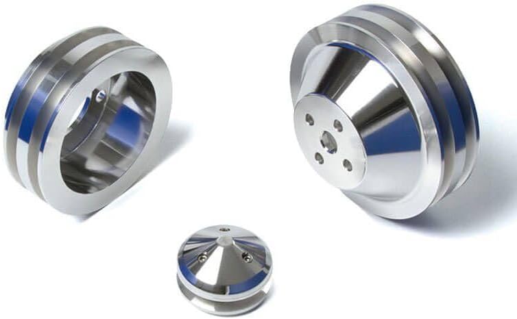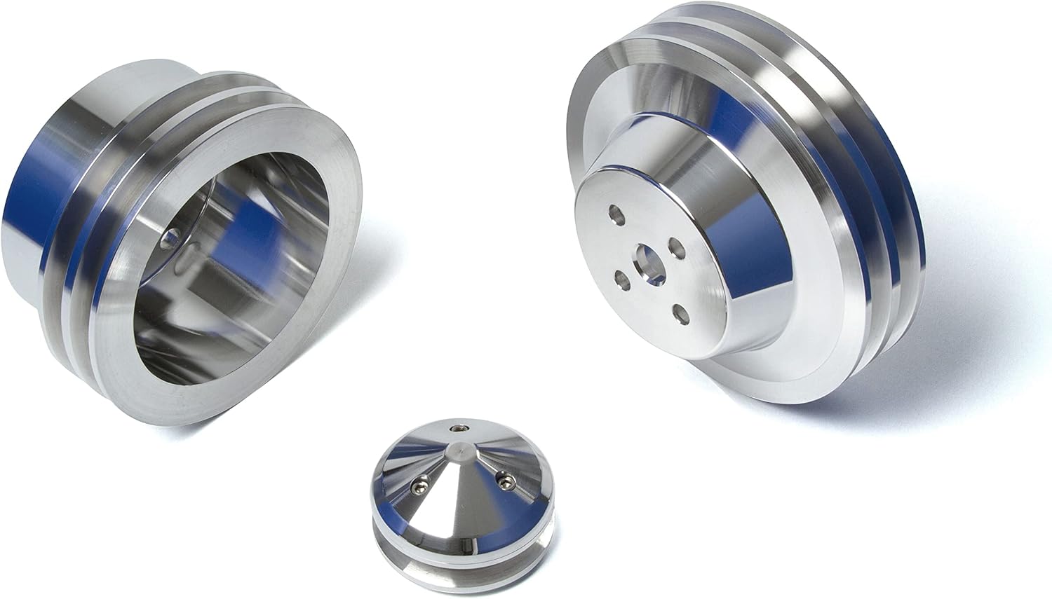 Speedway Motors Chrome Pulley Set for SBC 283-350 V8 Engines, 2-Groove Water Pump Pulley & 3-Groove Crank Pulley for Long Water Pump Applications, Durable Chrome Plated Finish