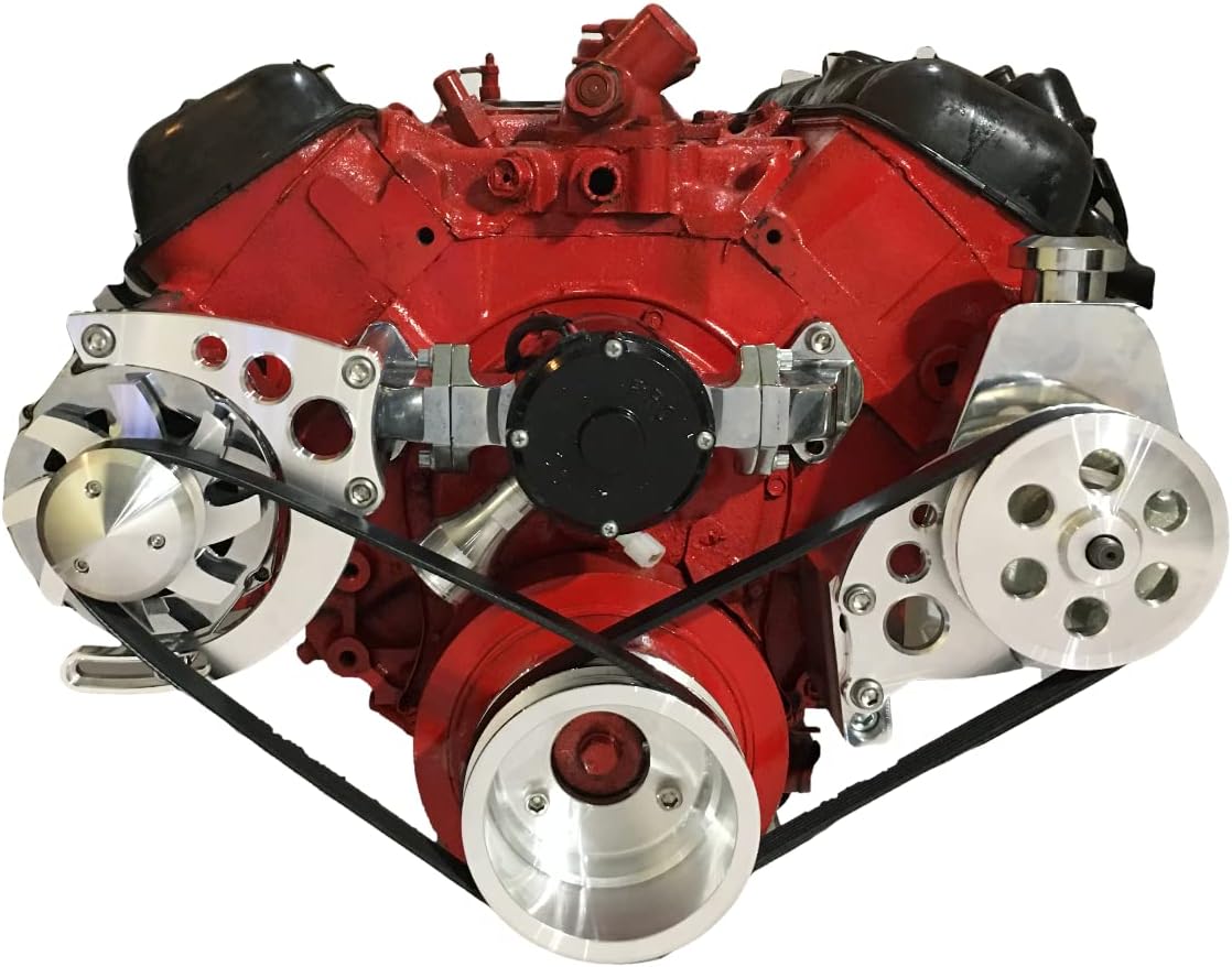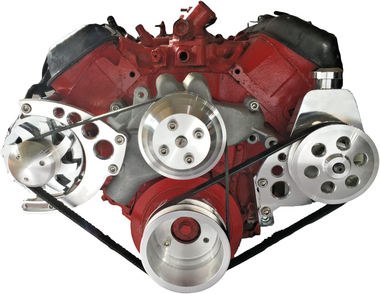 Small Block Chevy Serpentine Pulley Conversion Kit ALT PS Long WP SBC LWP 5